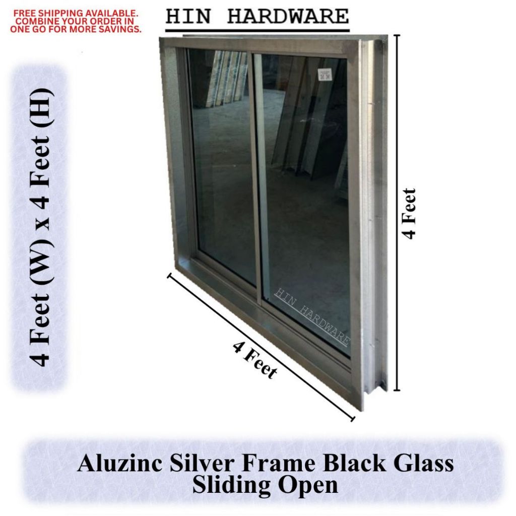HIN [NO LIMIT PER ORDER] Aluzinc Window Without Grille 4'x4' Metal Frame With Aluminium Glass