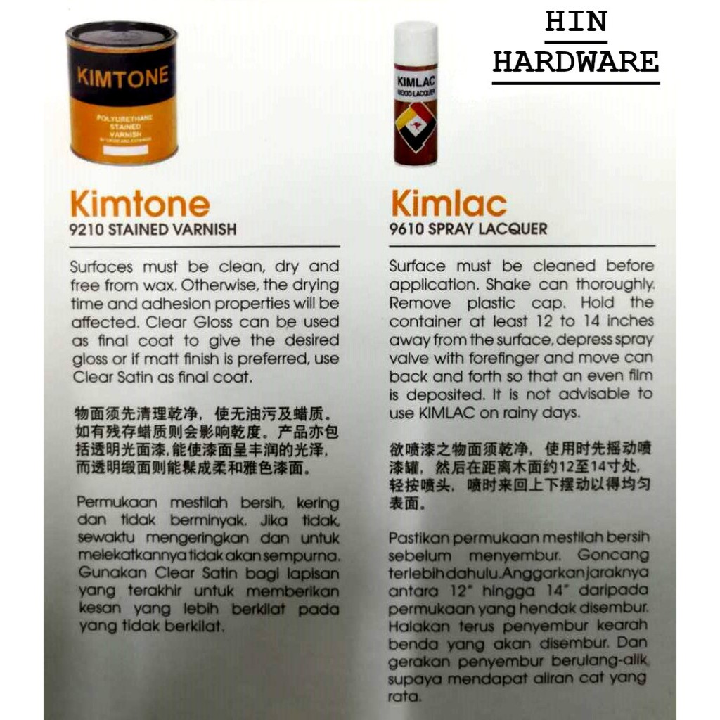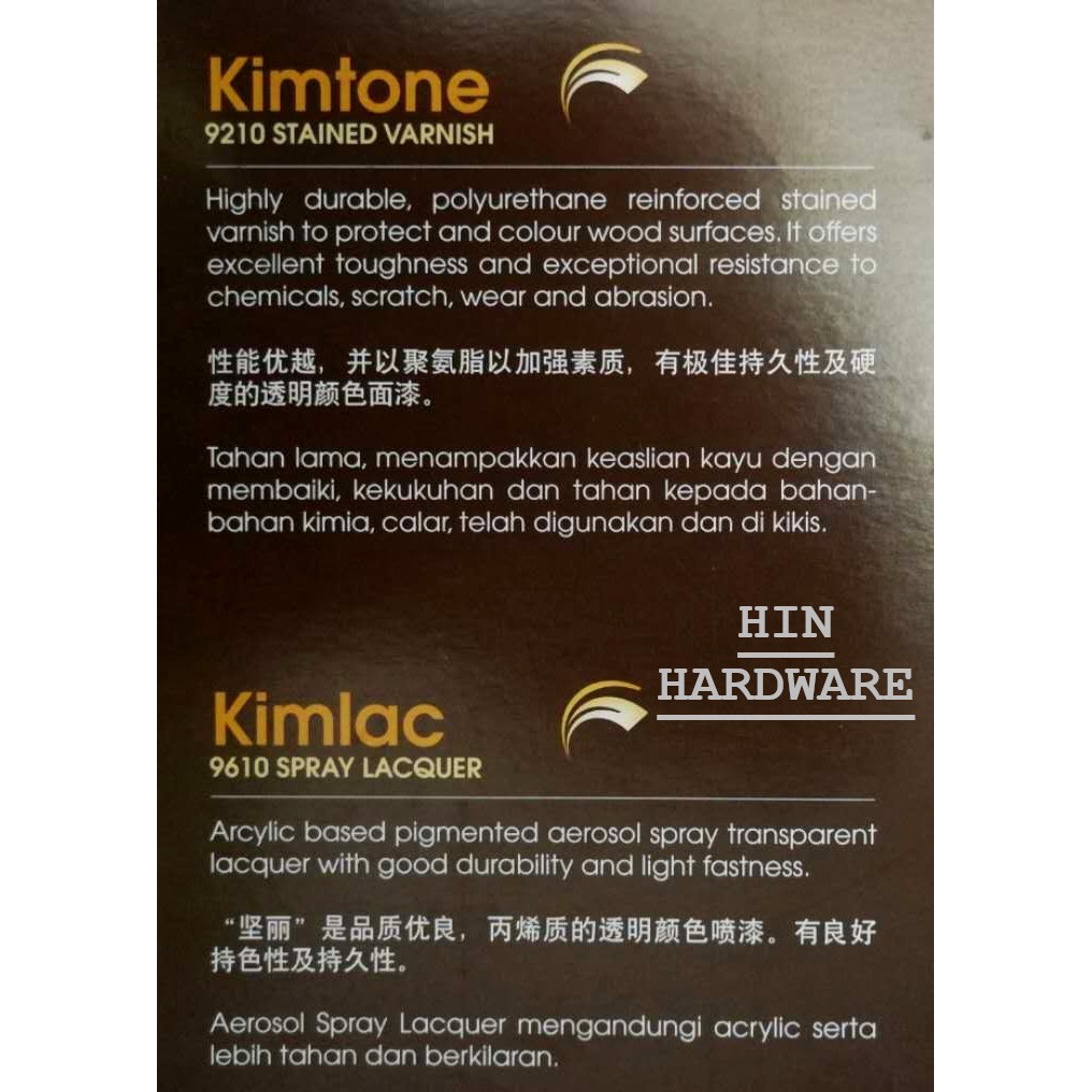 HIN 400ML KIMLAC Wood Spray Lacquer / Wood Varnish / Wood Shellac / Syelek Kayu