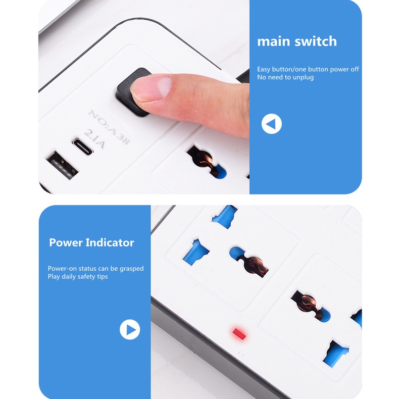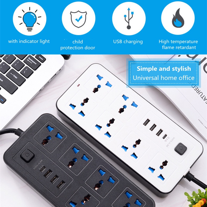2m 3m 5m Power Socket Multifunctional Office Home Strip With USB Pd Port Fast Charge Extension Cord