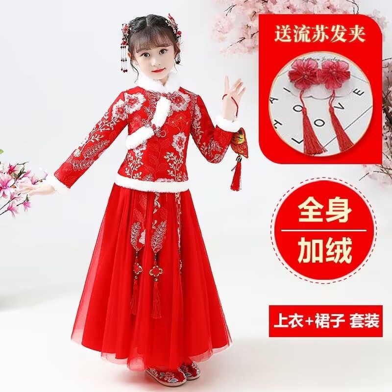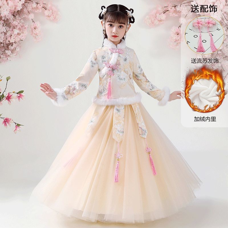 Children Hanfu Princess Dress Plus Velvet Thickened Hanfu Little Girl Tang Fairy Skirt Skirt Ancient Cheongsam Set