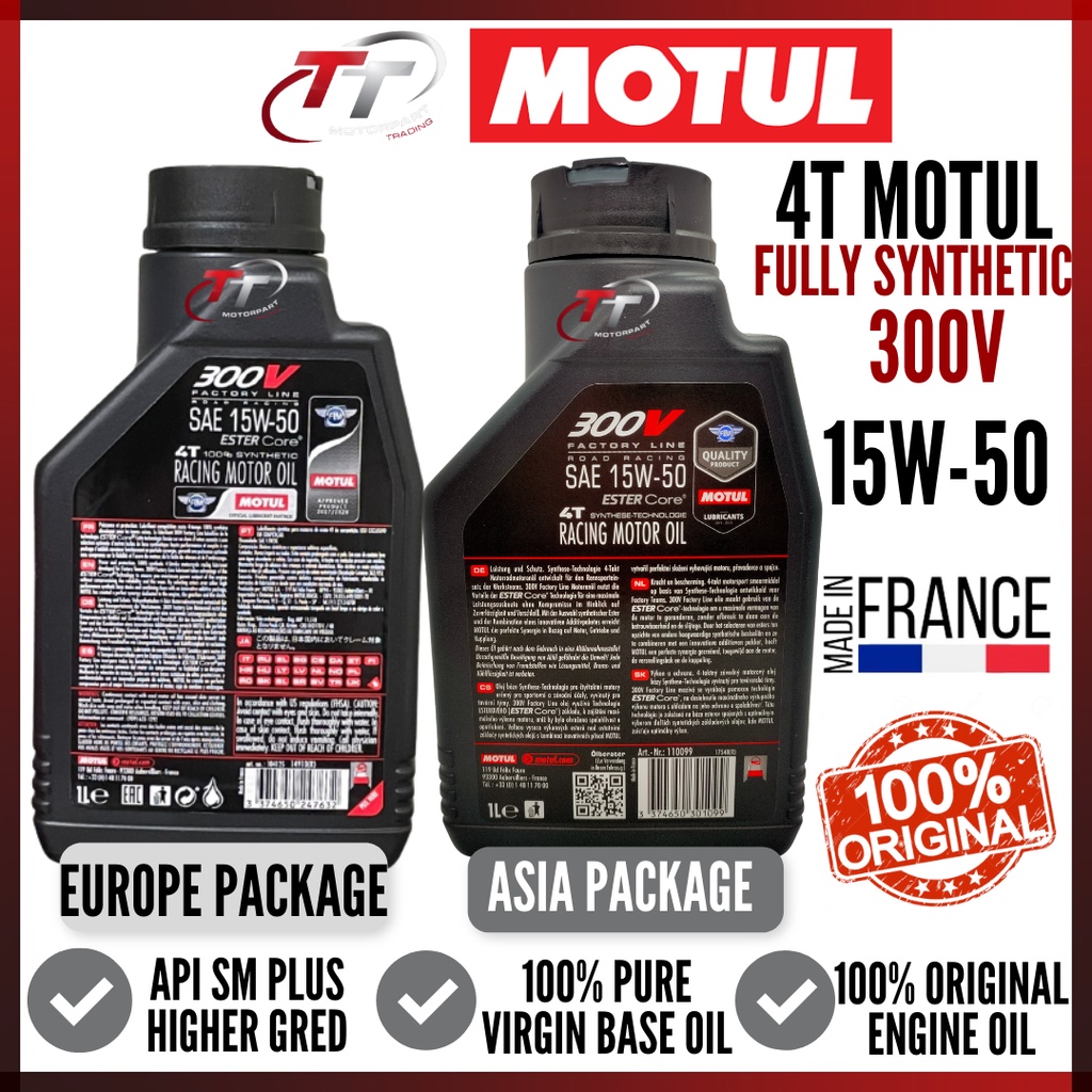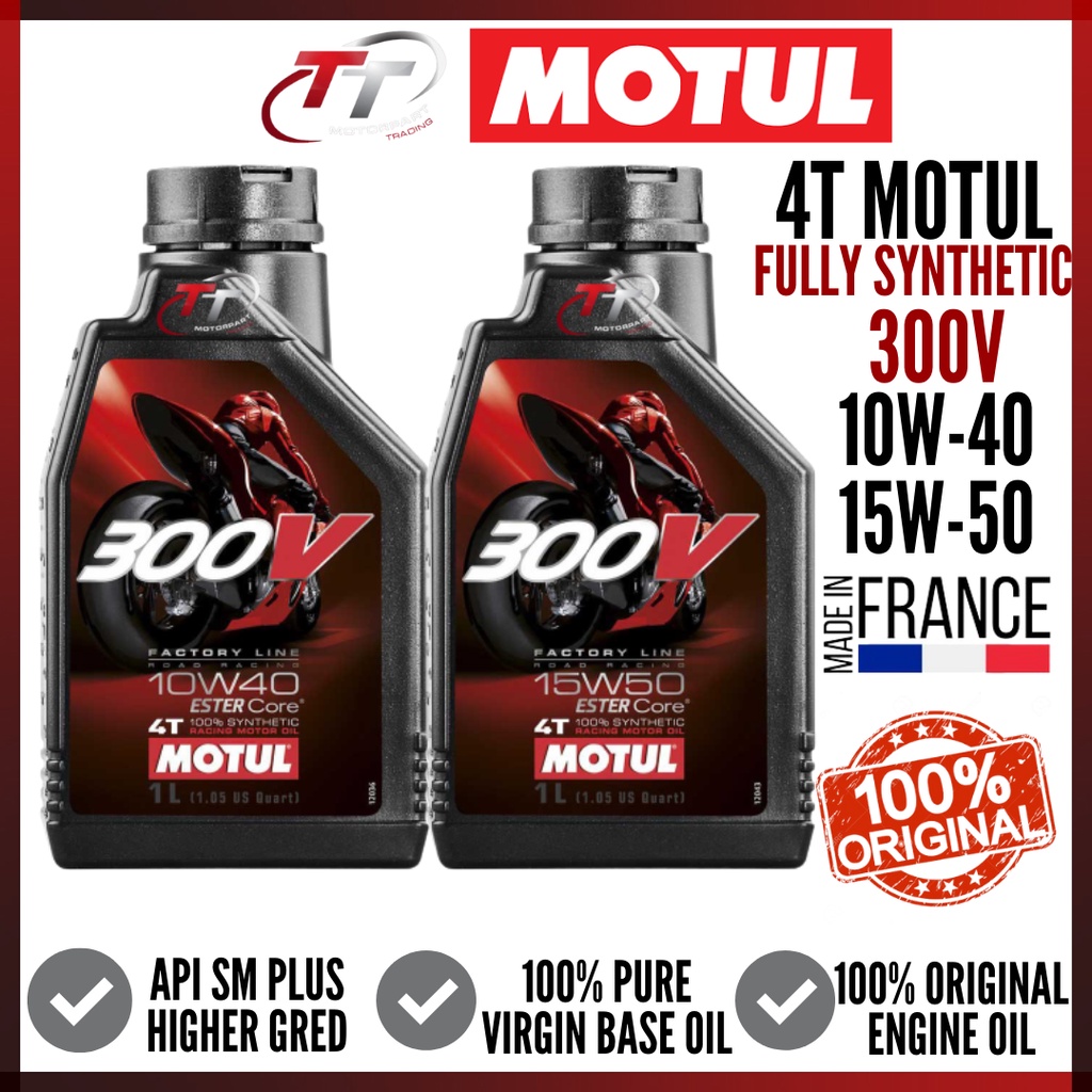MOTUL 4T 300V 10W-40 15W-50 ROAD RACING 100% SYNTHETIC ESTER CORE OIL ENGINE CYLINDER LUBRICANT MINYAK HITAM MOTORCYCLE