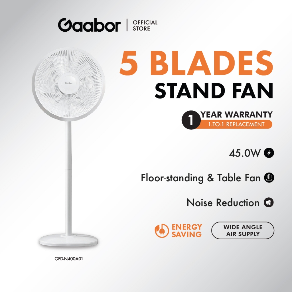 Gaabor 3 Speed Adjustment 5 Blades 45W Quiet Lightweight Stand Fan GFD-N400A01