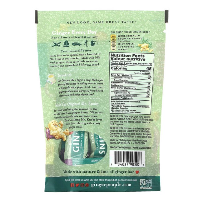 The Ginger People, Gin Gins, Chewy Ginger Candy, Original, 3 oz (84 g), Made with Fresh Ginger, Travel Size, Gluten Free