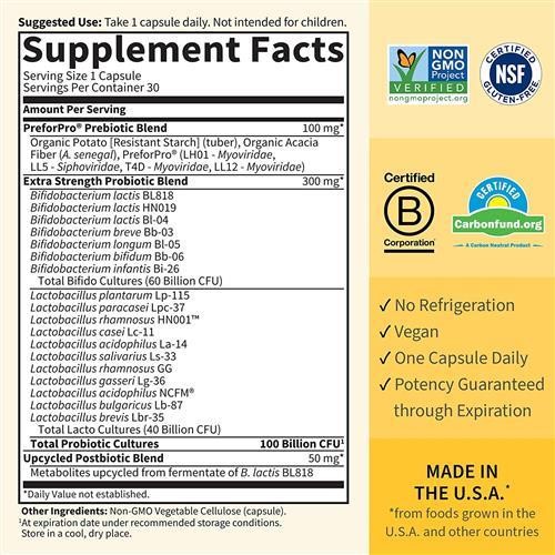 Garden Of Life Dr.Formulated Probiotics 100 Billion 18 Probiotic Strains Extra Strength-30 Vegetarian Capsules