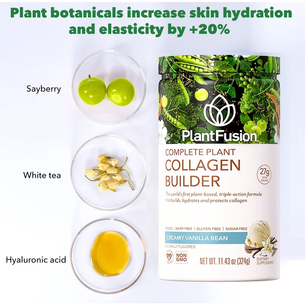 PlantFusion Collagen Builder Plant Based Peptides Protein Powder, Vegan Collagen, Creamy Vanilla Bean, 324g