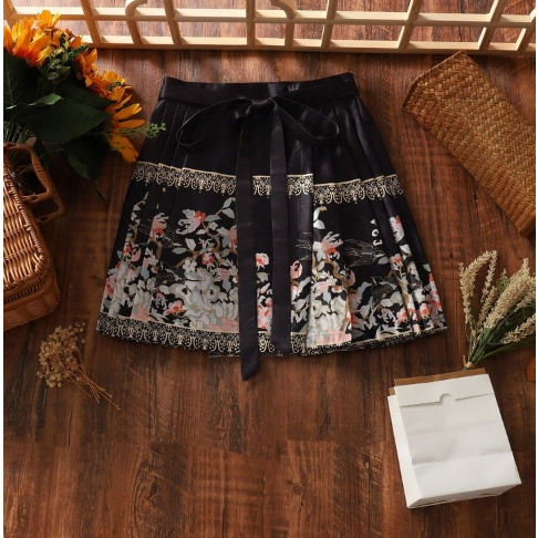 2023 Summer New Style Retro Temperament Chinese Style Improved Hanfu Daily Short Style Chinese Elements Lace-Up Horse Skirt