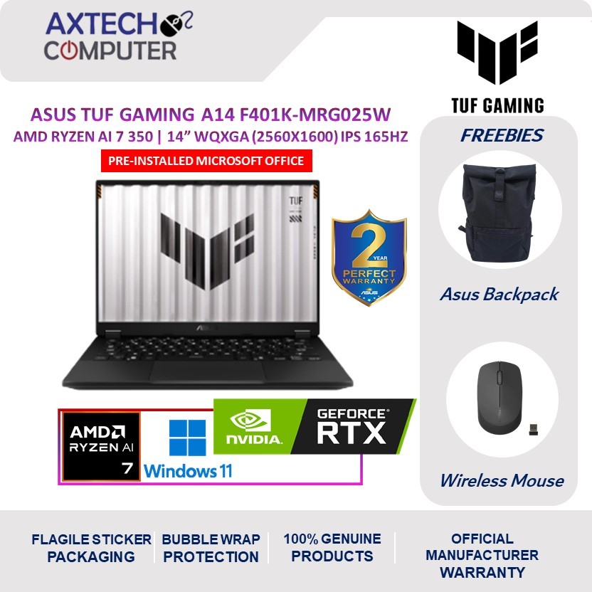 Asus TUF A14 FA401K-MRG025W 14" 2.5K 165Hz Gaming Laptop ( AI 7 350, 32GB, 1TB SSD, RTX5060 8GB, W11 )