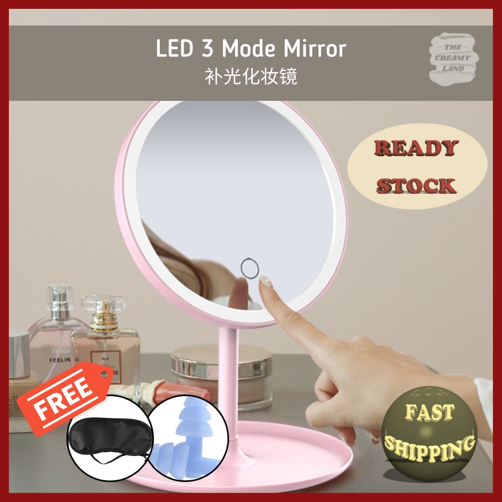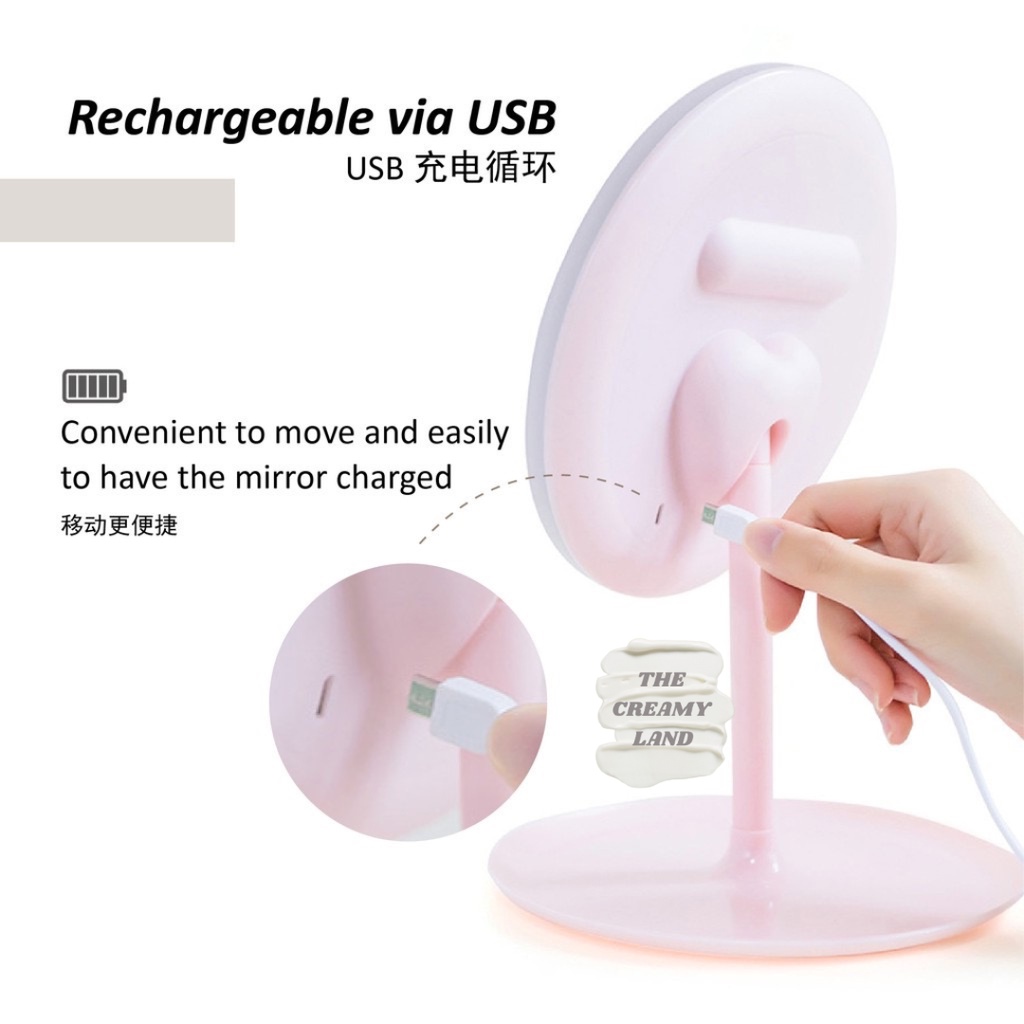 LED USB Beauty Dressing Makeup Mirror Cosmetic Girls Table Light Rechargeable Rotatable Vanity Toilet Bedroom 带灯化妆镜桌凳