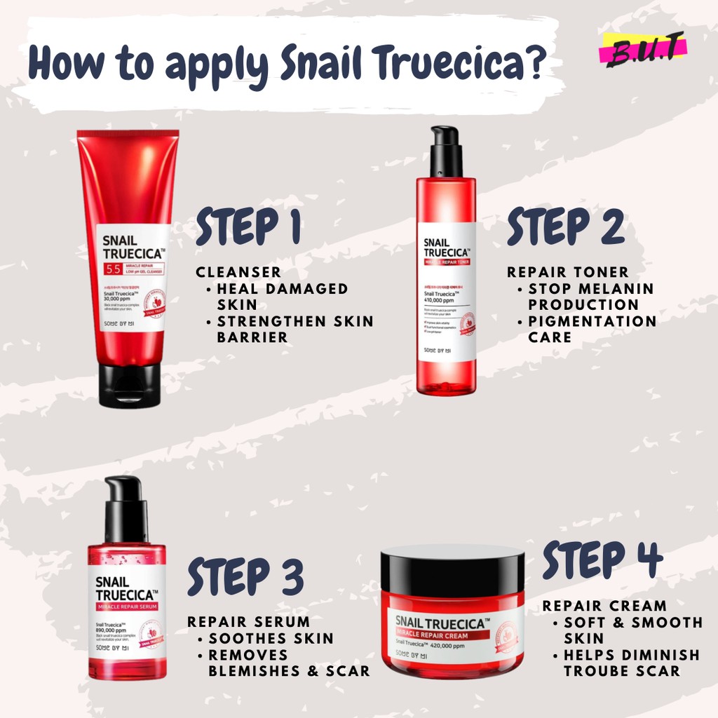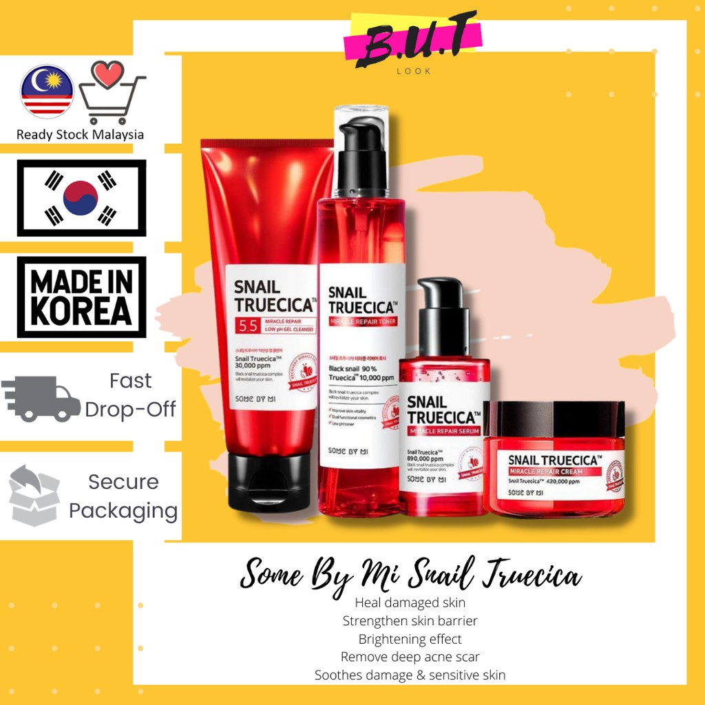 Some By Mi Snail Serum Truecica Toner Cream Cleanser Miracle Repair (Beauty Korean Skincare Set SomeByMi Me SomeByMe