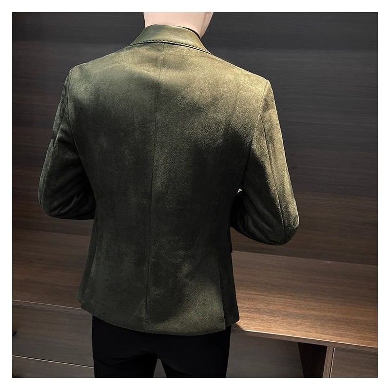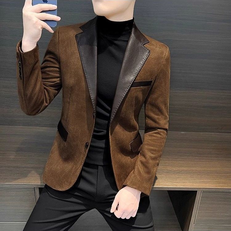 TXGU jaket lelaki Tekstur lembut British style blazer menDeerskin 2024 Casual Men's Suit Jacket Hong Kong Style Autumn Pu Shuai New Advanced Stitching Suit