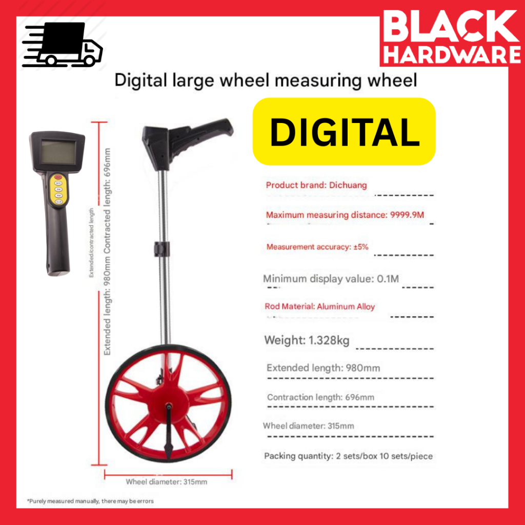 BLACK HARDWARE 12" Working Road Distan Measuring Length Tool Pengukur Ukur Jalan Roller Counter Wheel Tayar Ukur U量路轮