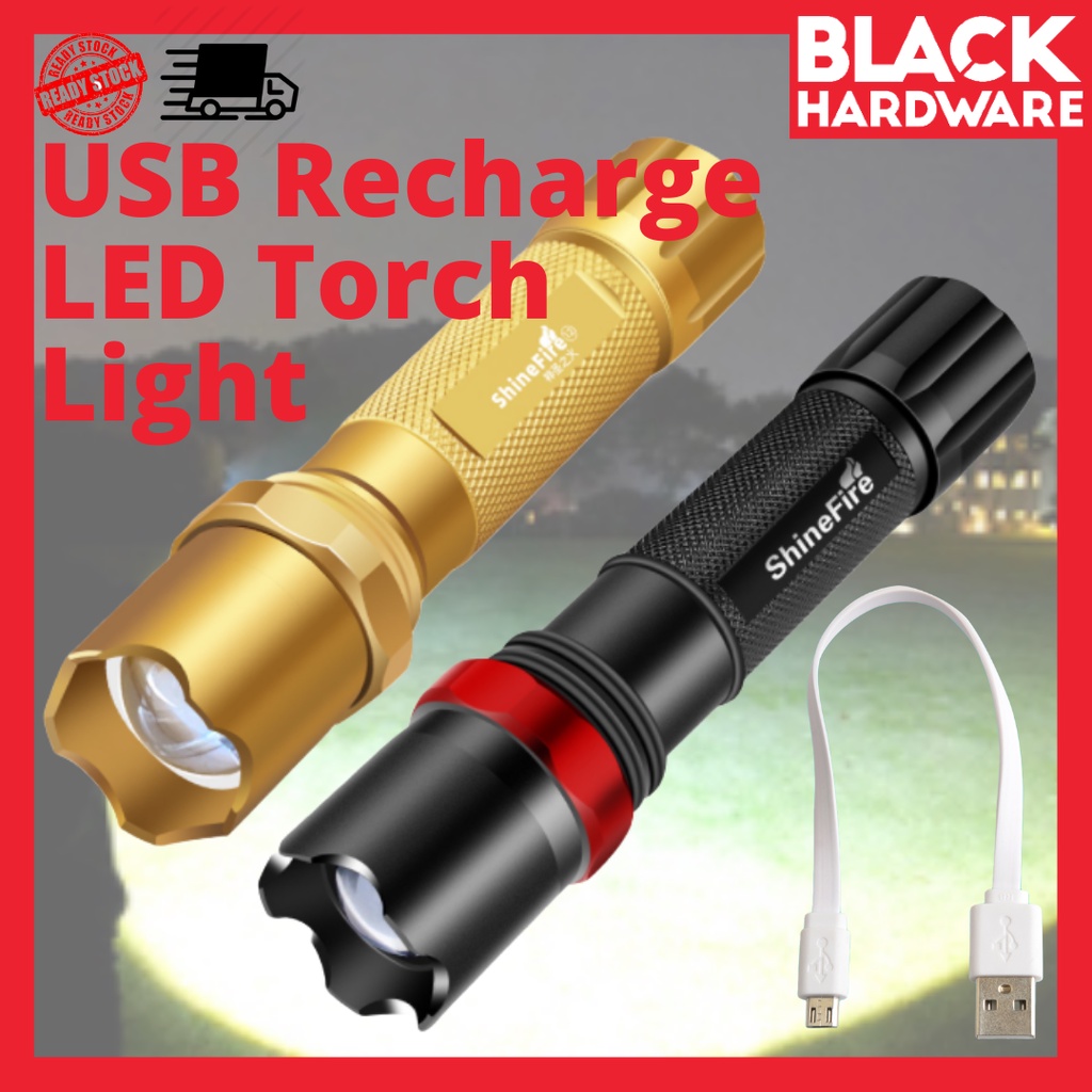 BLACK HARDWARE 手電筒強光 Mini Lampu Picit Suluh LED Cas Torch Camping Light Rechargable Cree Torchlight Terang Jarak Jauh 充电