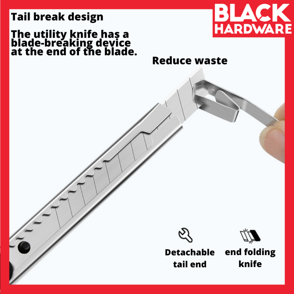 Black Hardware Metal Case Snap Off Acrylic Cutter Knife Blade Pisau Tolak Potong Kertas Tool Tools Set 刀