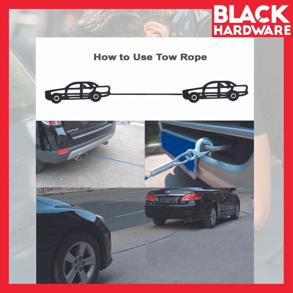 Black Hardware Pull Car Vehicle Durable Heavy Duty Metal Rope 2 TON Tali Kereta Besi Tahan Berat Lasak Towing Rescue Ste