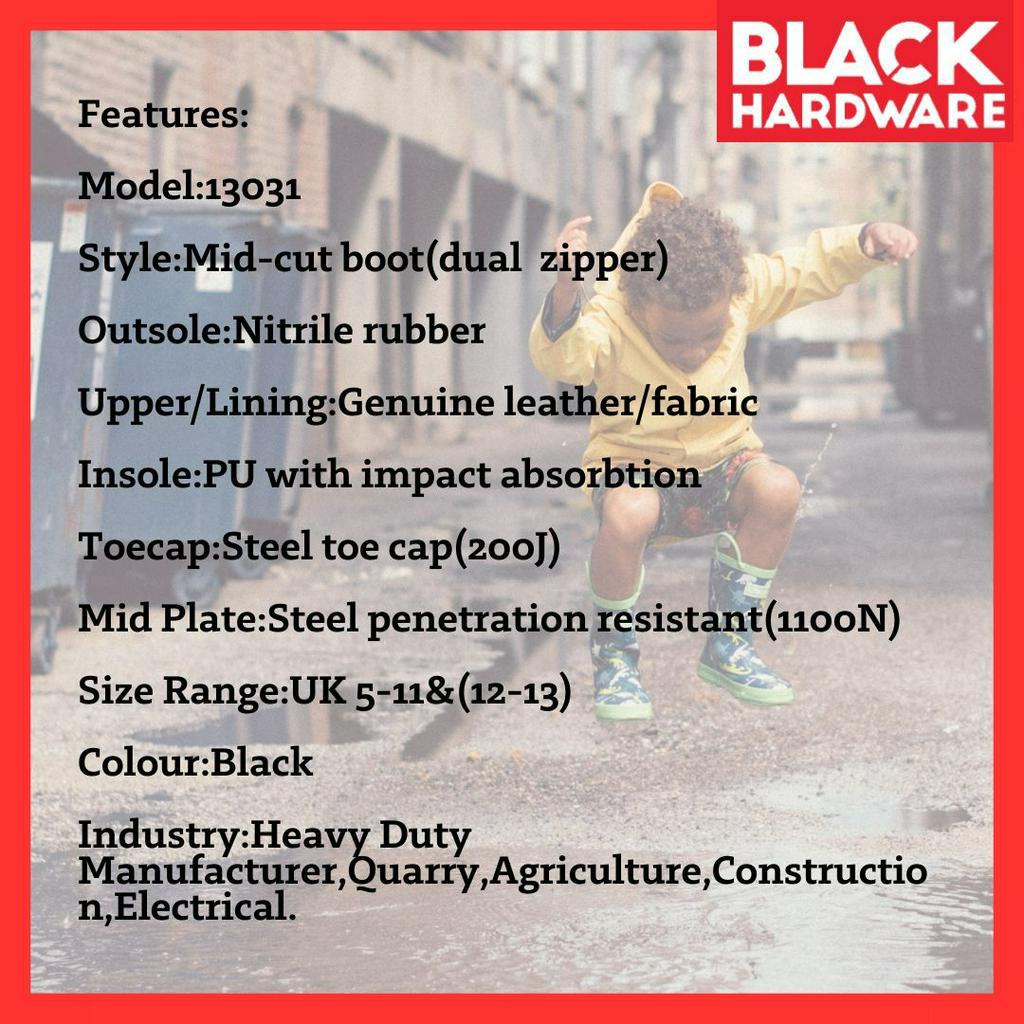 Black Hardware Kasut Kerja Lelaki Kulit Hitam Perempuan HAMMER KING Safety Boots High Cut Kasut Safety Boot Lelaki 工业鞋