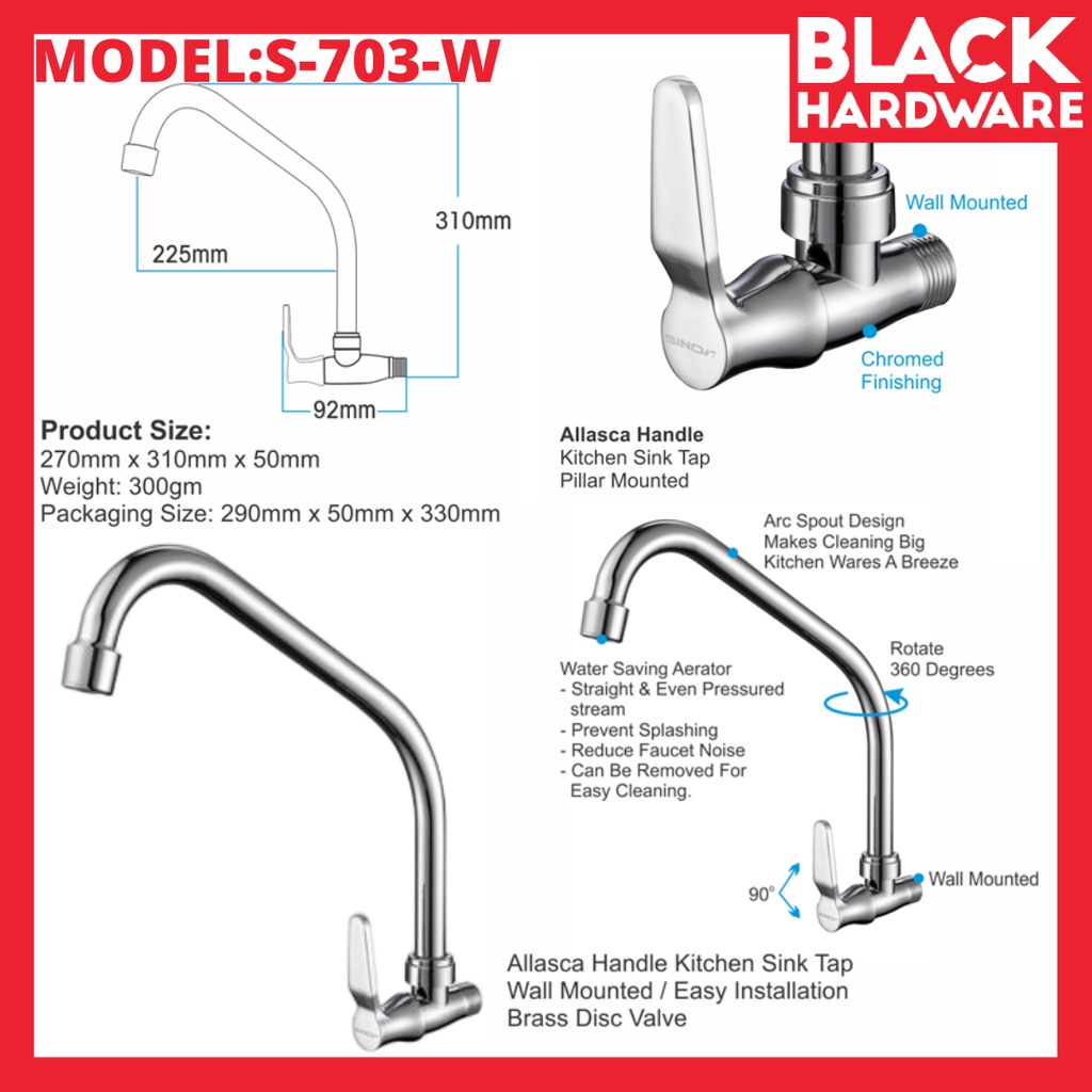 Black Hardware SINOR Kitchen Sink Faucet Pipe Kepala Paip Sinki Dapur Flexible Kitchen Sink Tap Doe Water Tape Water Tap