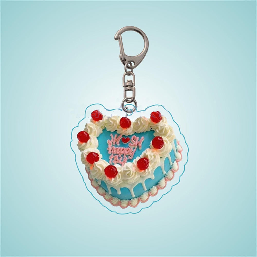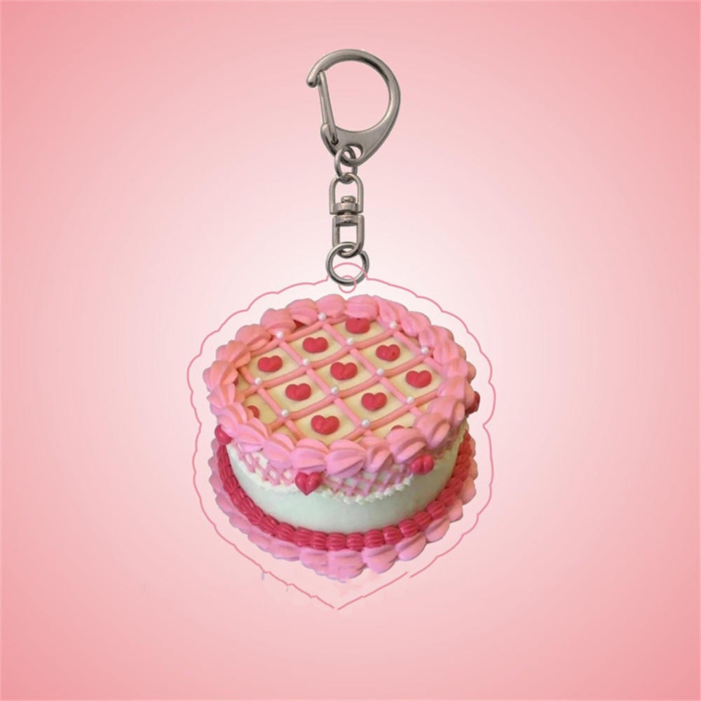 Fashion Cake Design Key Chain Cute French Pastries Bag Keychain Happy Birthday Cake Acrylic Key Chain Pendant Bag Accessories