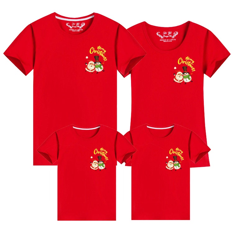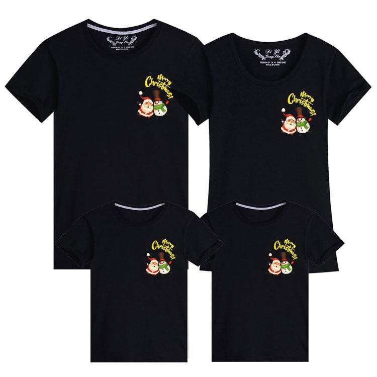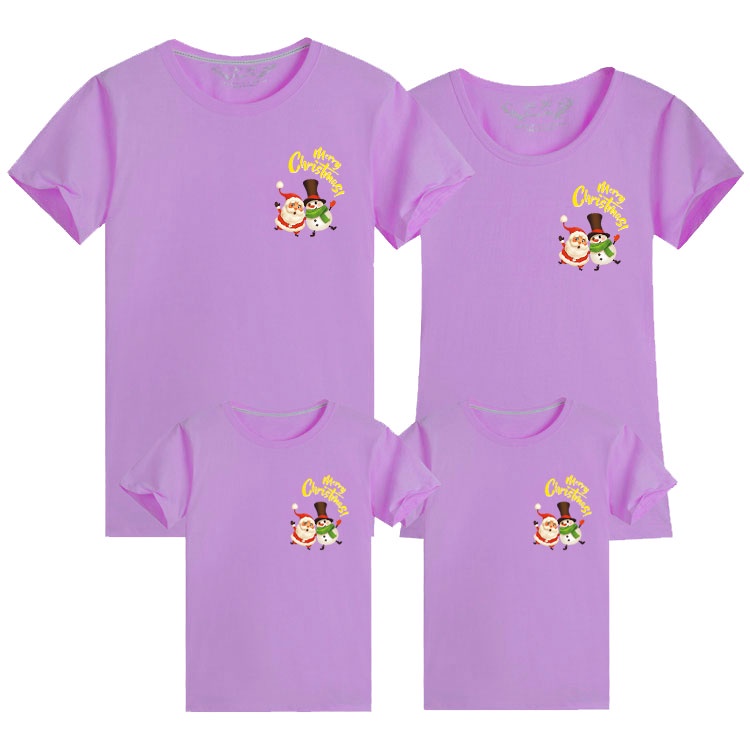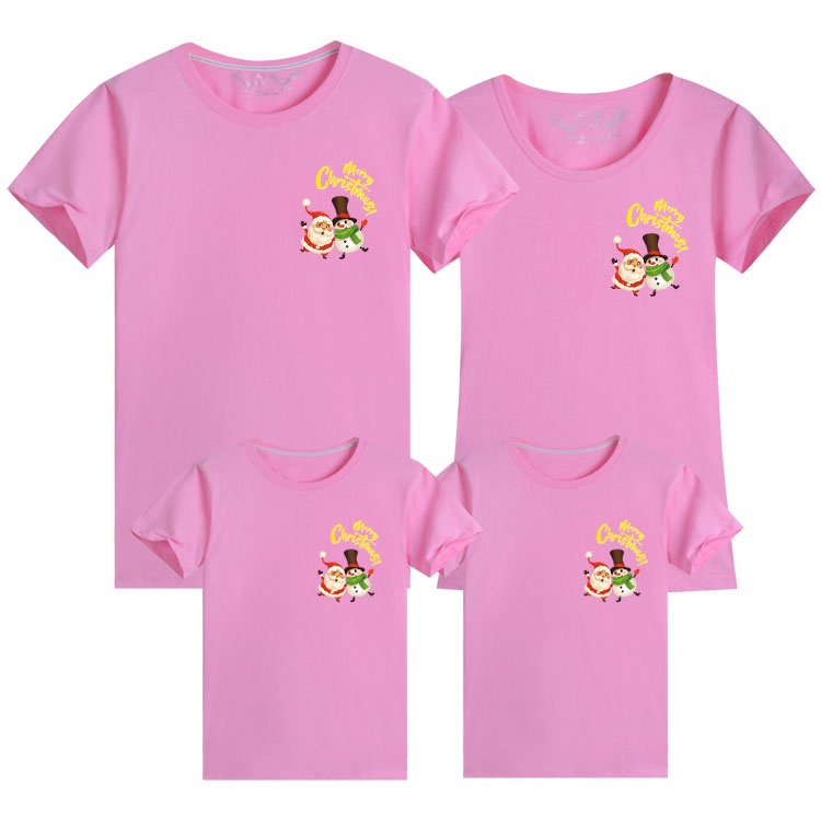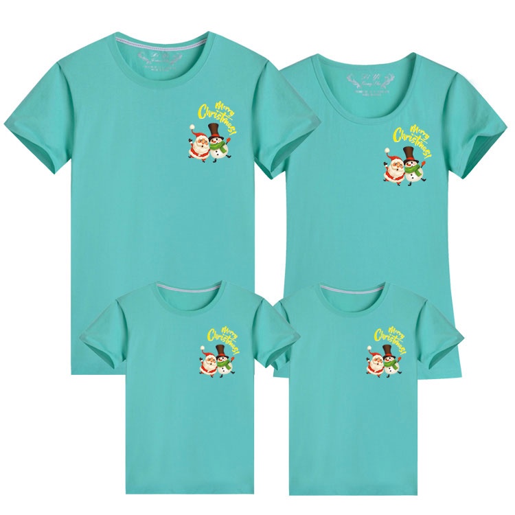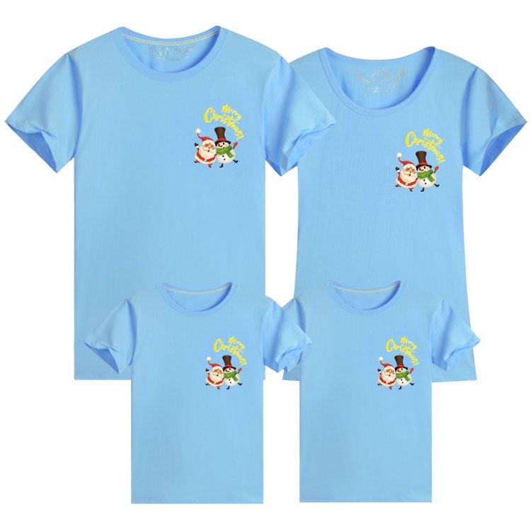 Merry Christmas Santa Snowman Xmas Cotton Family Matching Outfits T-shirt Women Blouse Couple Set