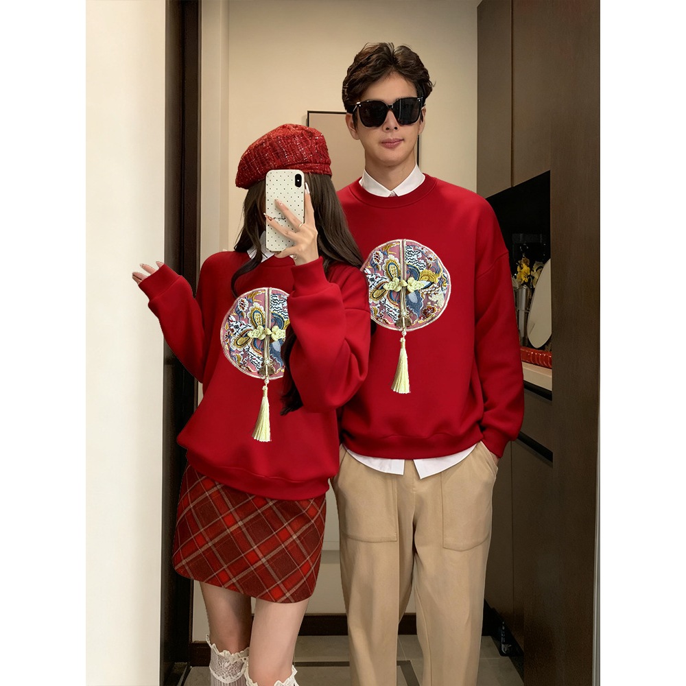 Embroidered Matching Family Set - Long Sleeve Sweatshirt & Baby Romper - Chinese New Year Design
