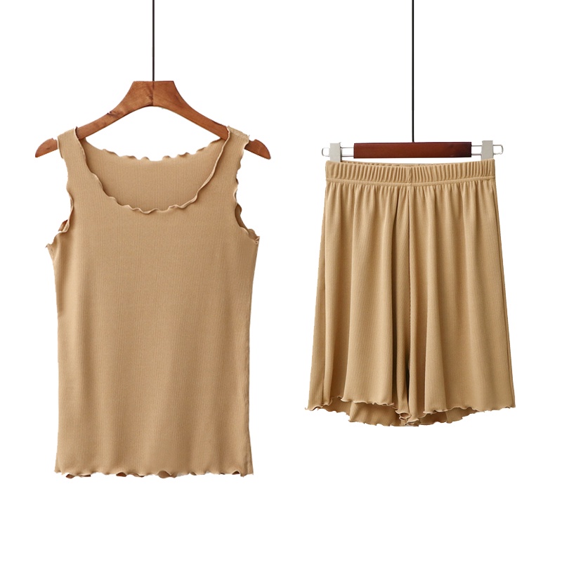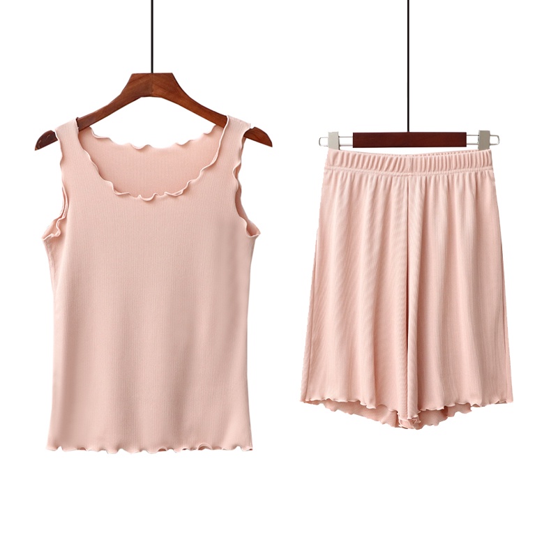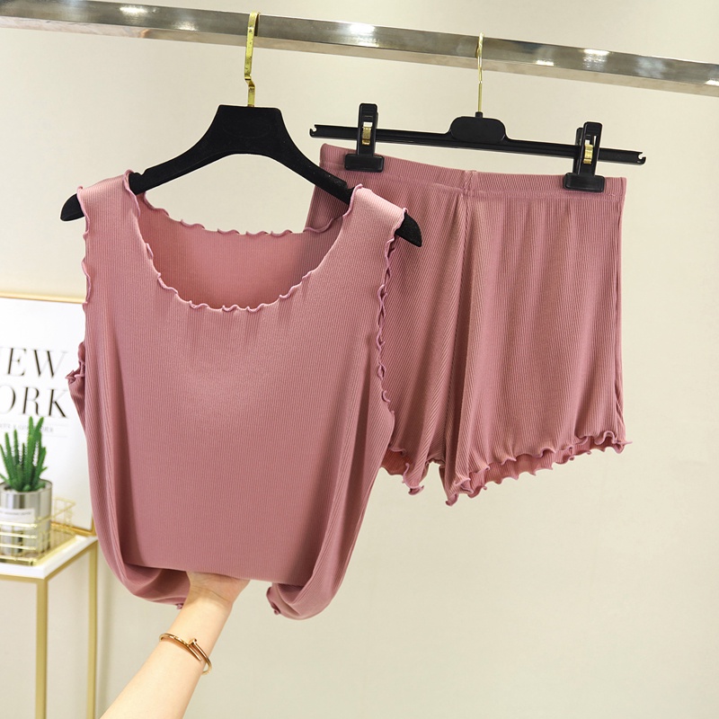 ☜✿Modal pakaian dalam wanita boleh memakai jaket sukan musim panas pelajar baju pendek rompi baju tidur dua helai