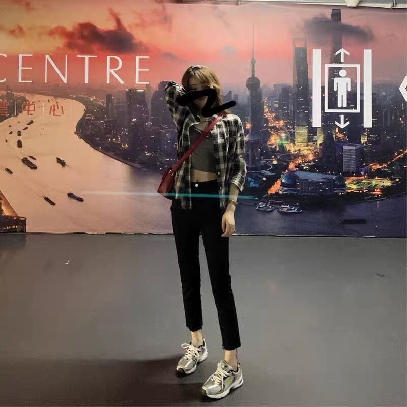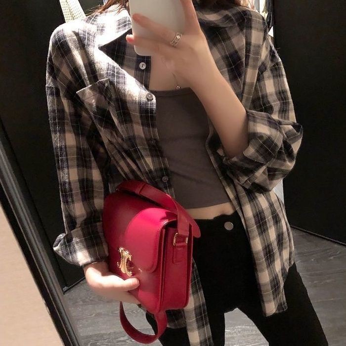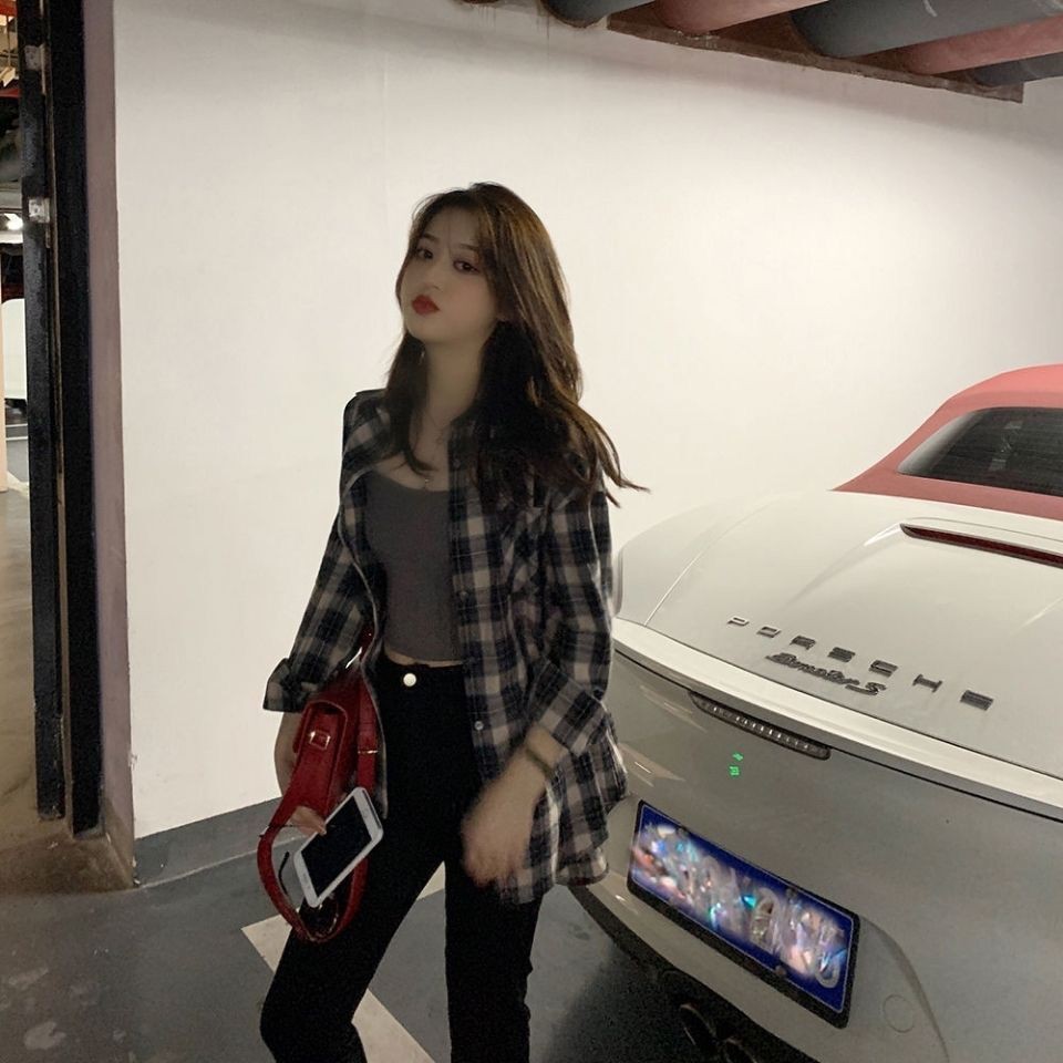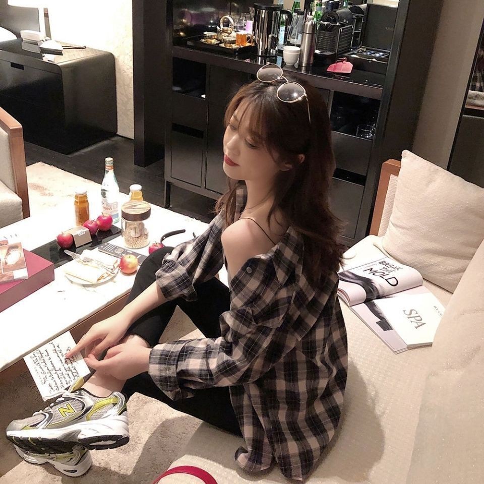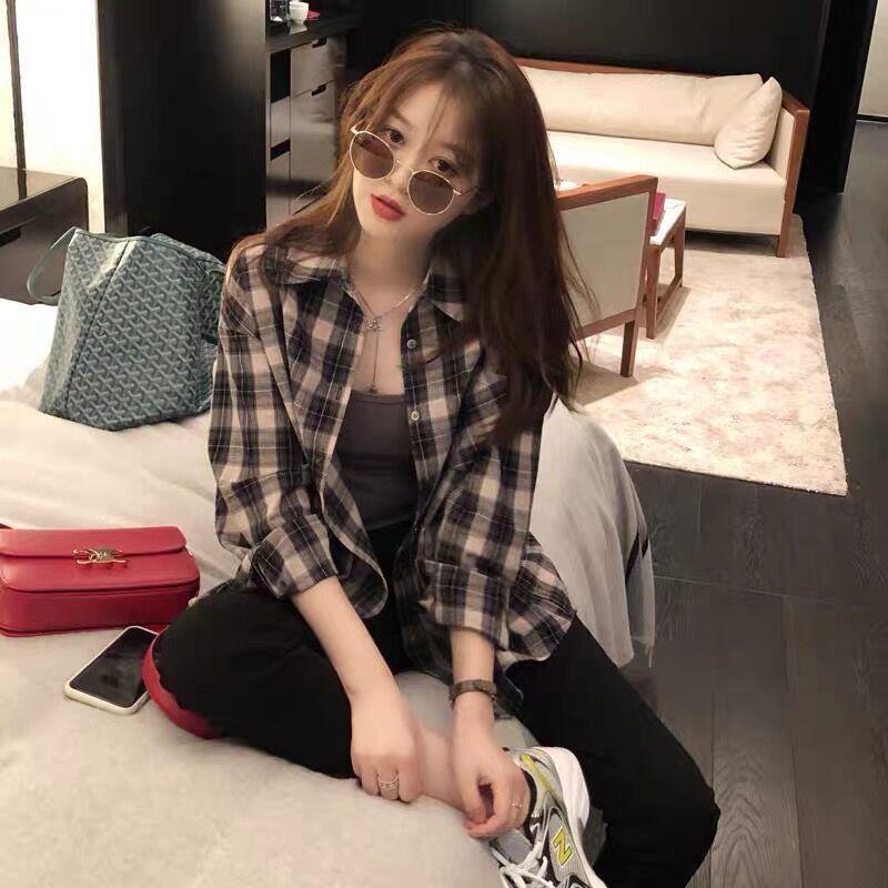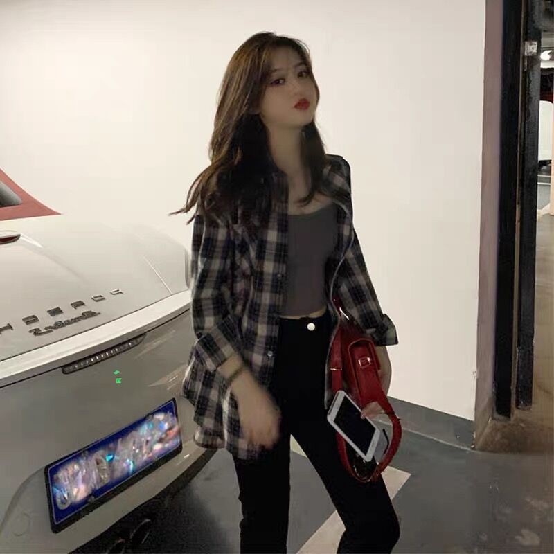 △┇✚Jaket baju kotak-kotak bergaya baru wanita musim luruh, pakai semua padanan gaya Korea pelajar atasan longgar rasa da