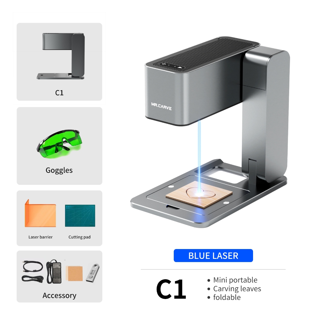 DAJA C1 5W Laser Engraving Machine Portable Suit Set with Laser Safety Glasses + Auto-Focus Stand Compact Laser Engraver for On-the-Go Use DIY Small Business