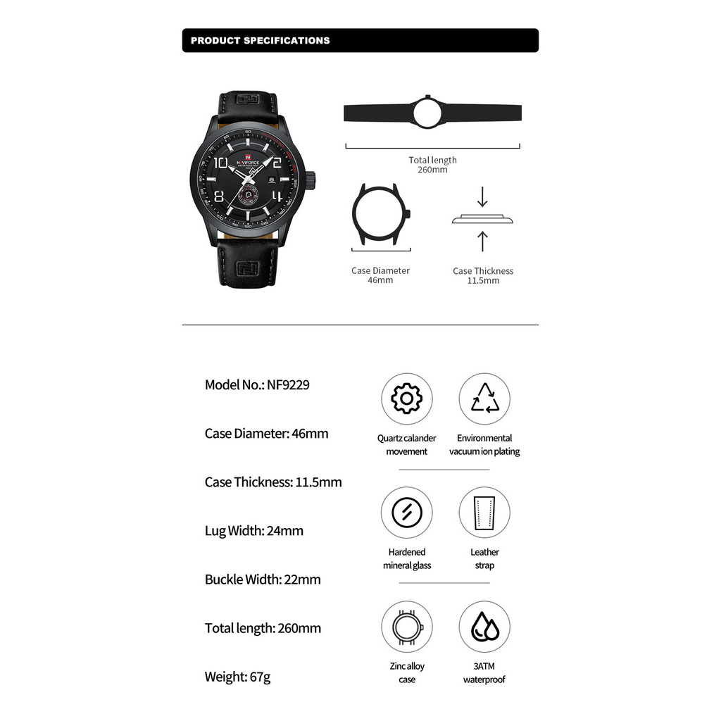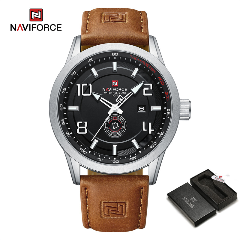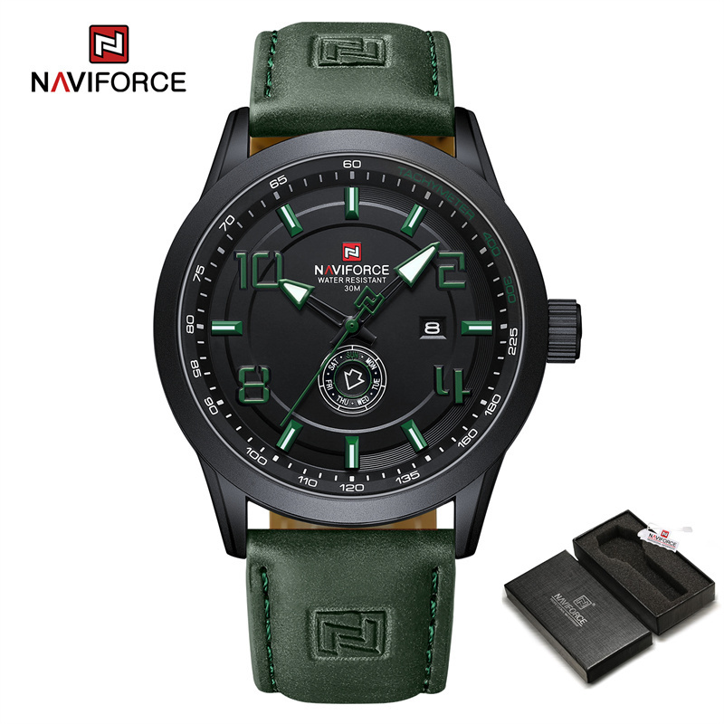 NAVIFORCE Original Men's Watches Simple Fashion Waterproof PU Strap Luminous Date Week Quartz Wristwatch