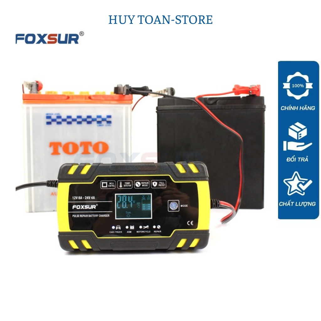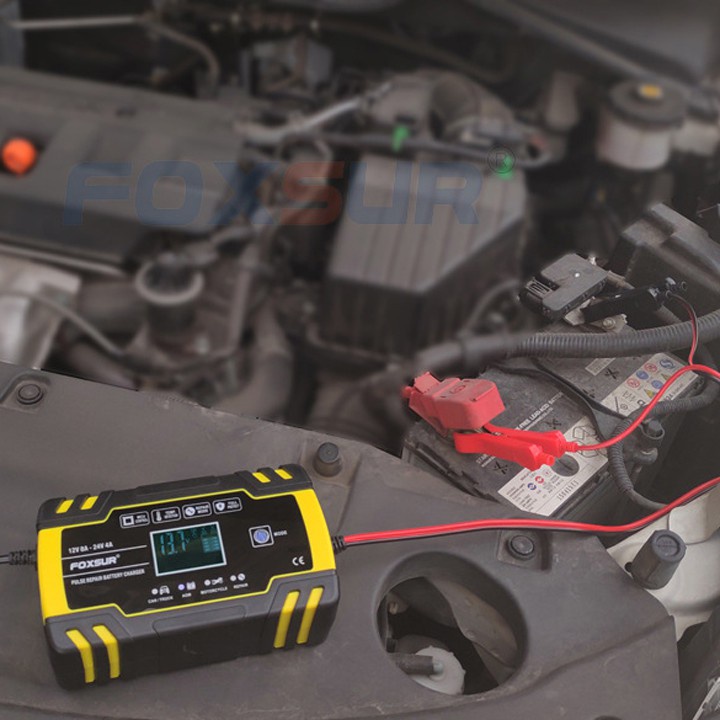 FOXSUR 12V 24V 6Ah - 150Ah battery charger automatically shuts off when full, battery maintenance and recovery function by sulfate reduction