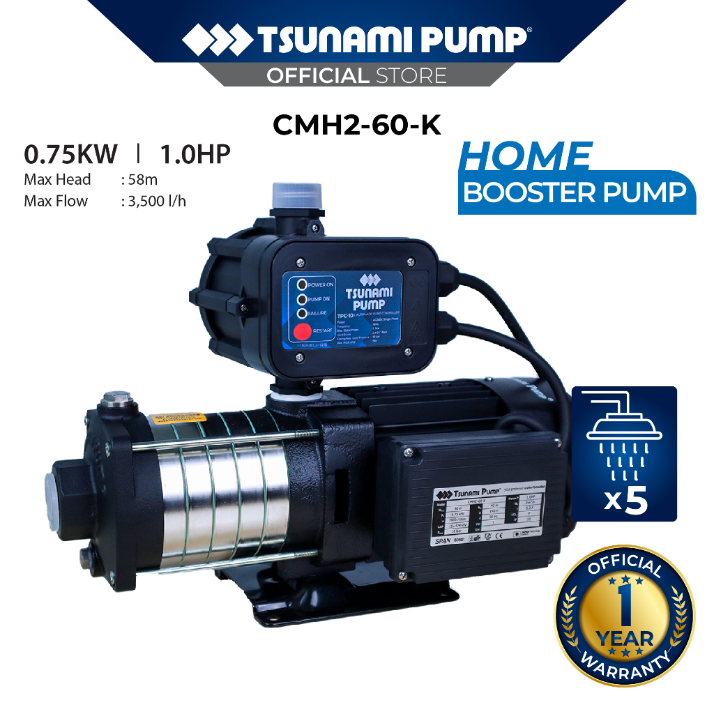 Tsunami Pump CMH2-60-K Automatic Start Stop Home Water Booster Pump