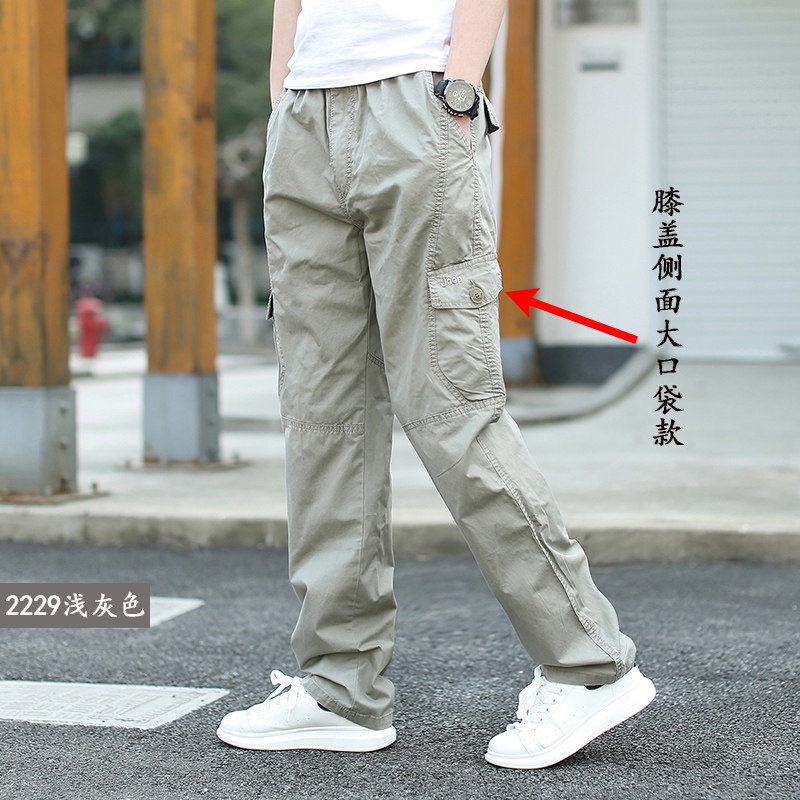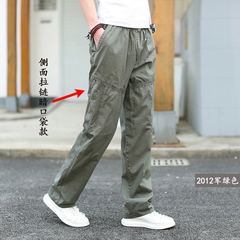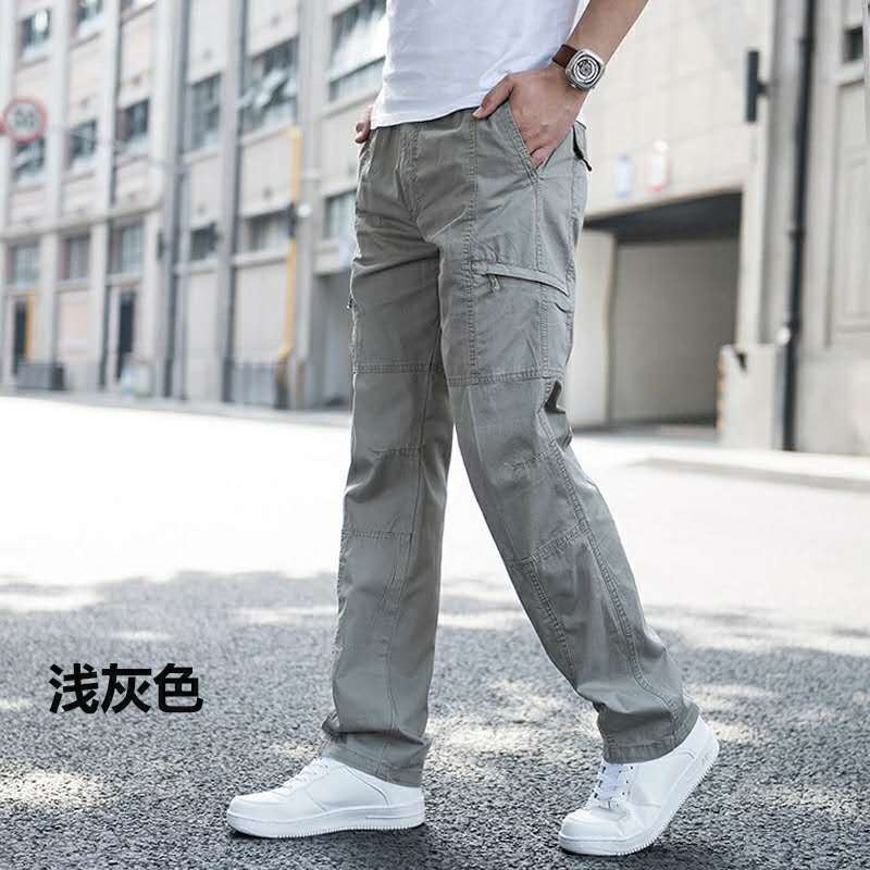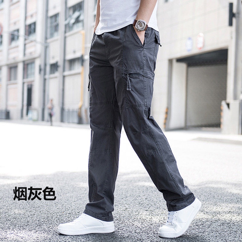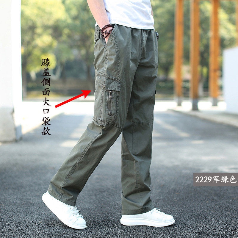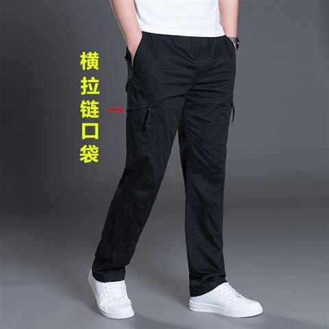 Summer Casual Pants Thin Loose-Fit Straight-Cut Large-Size Women's Pants Elastic Waist plus-Sized Pants Sports Multi-Pocket Cargo Pants