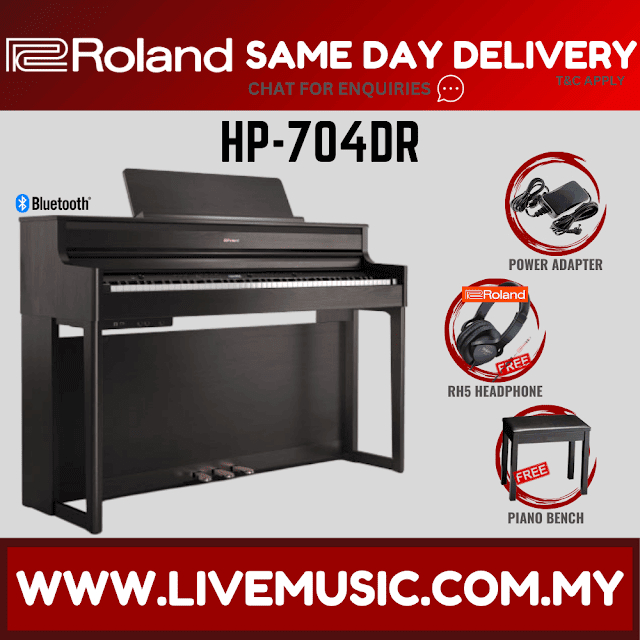Roland HP704 88-keys Digital Piano with Bench, Stand, RH-5 Headphones, 3 Pedal, Note Stand and Adapter - ( HP-704 )