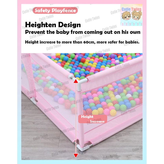 CutieTwins Baby Kids Safety Playpen Play fence Activity Center Game Sturdy Guard Rail Large Play Yard Toys Pagar Kanak