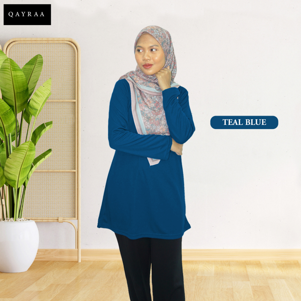 QAYRAA (51 warna) P1 Muslimah Jersey Microfiber Jersi Sukan 2026-Size S-XL/Black/Navy/Green/Burgundy