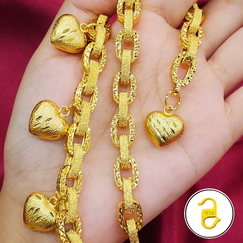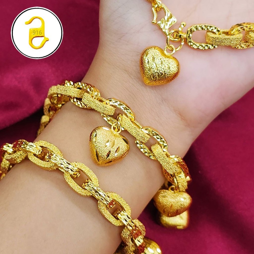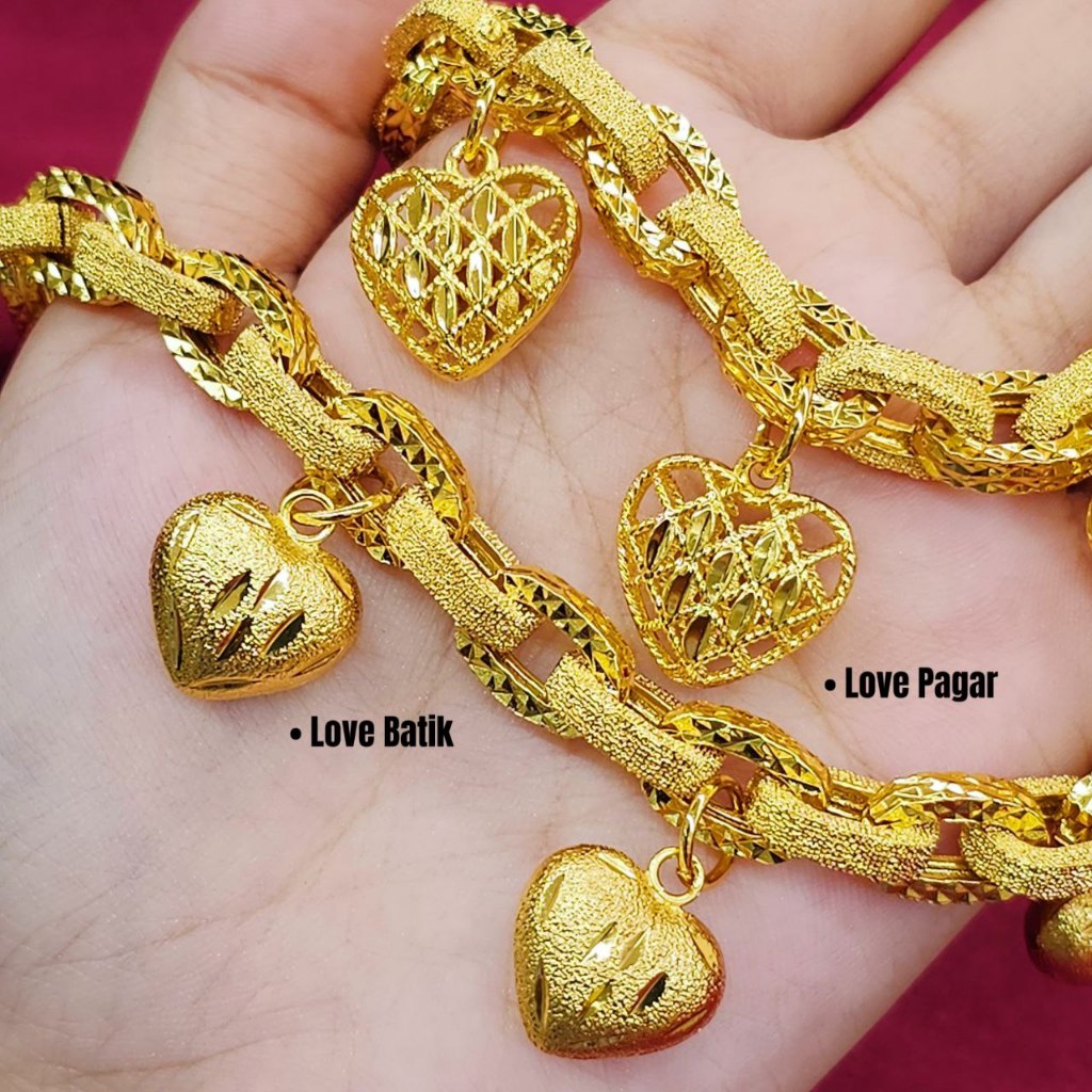 NEW Gelang Sauh Kikir Pasir Juntai Love Emas Sadur 24K Emas Titanium Emas Bangkok 2025 A16