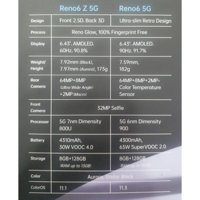 Oppo Reno 6 5G/Reno 6z 5G (8+128GB) Original Malaysia Set