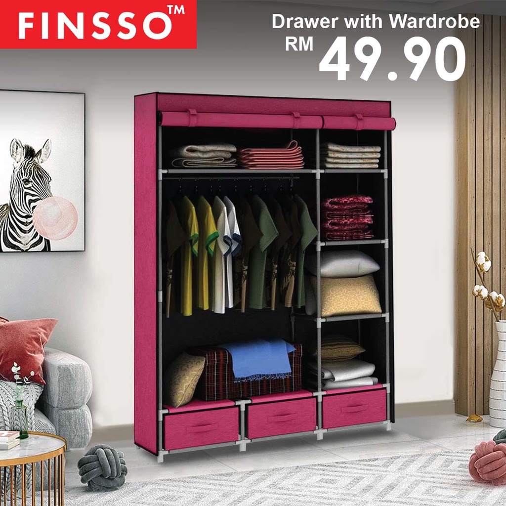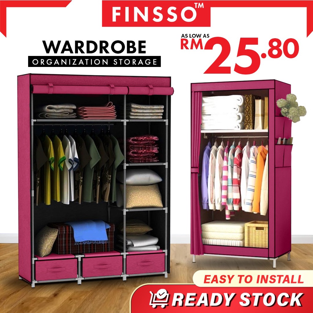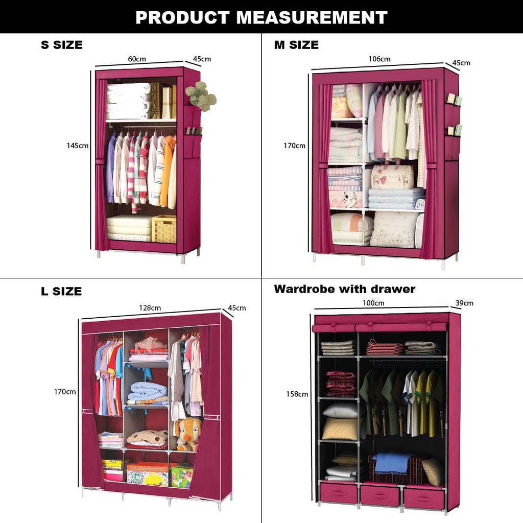 [Ready Stock!] Almari Baju Kain Murah + Ada Drawer! | Curtain Wardrobe with Drawer | Size S/M/L