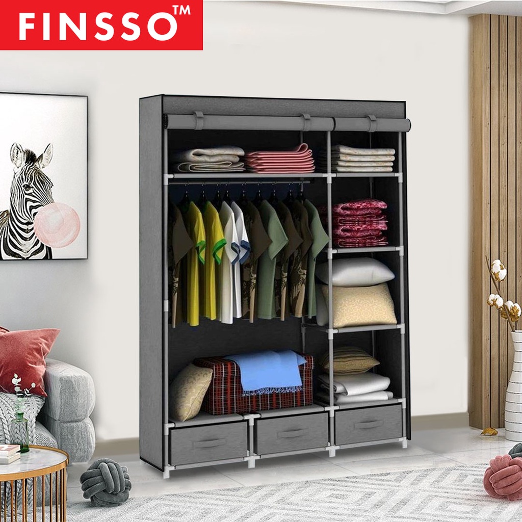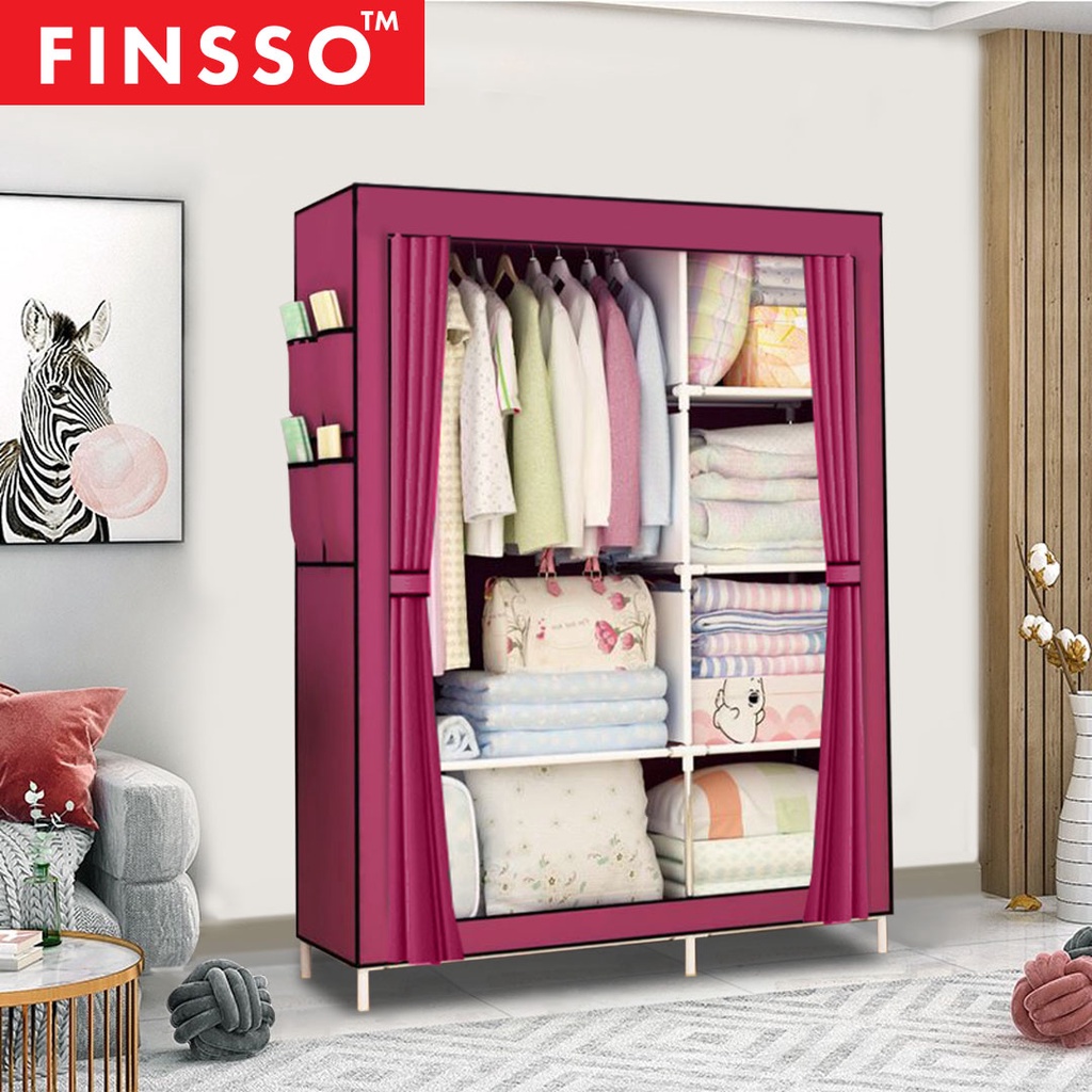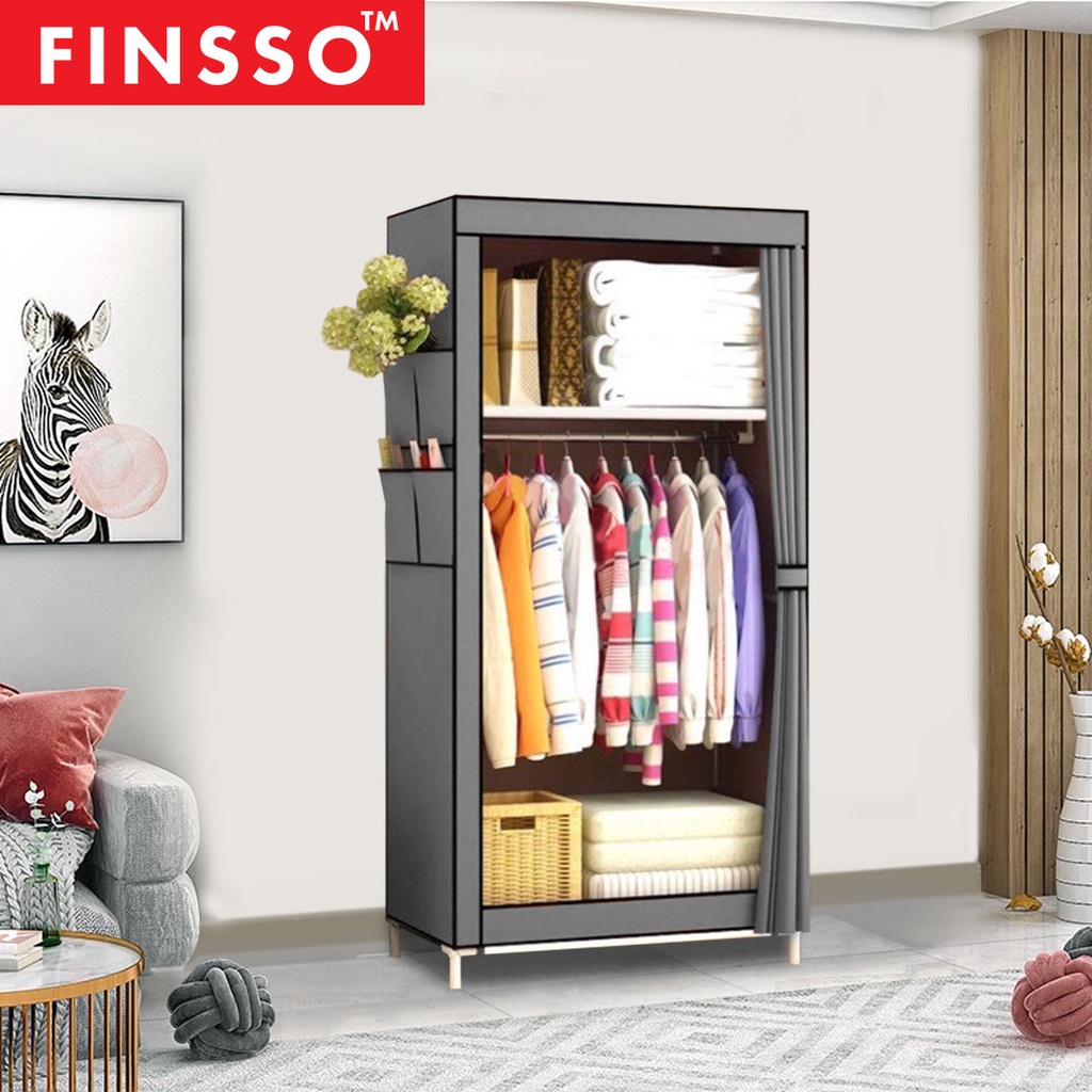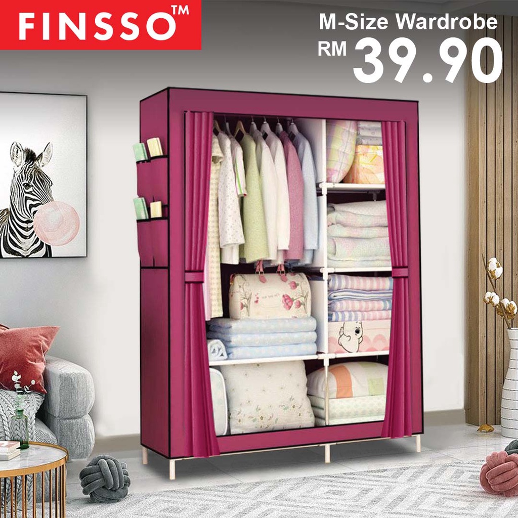 [Ready Stock!] Almari Baju Kain Murah + Ada Drawer! | Curtain Wardrobe with Drawer | Size S/M/L