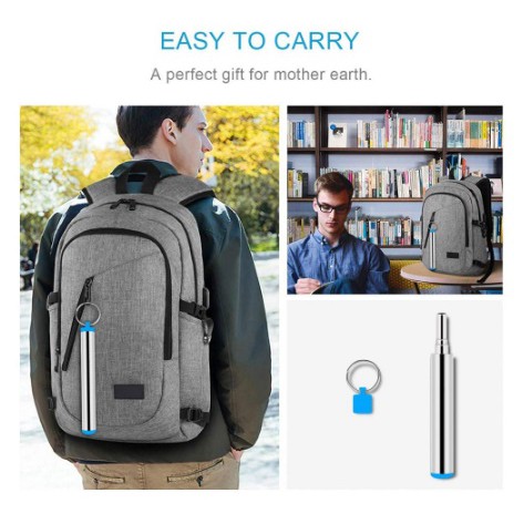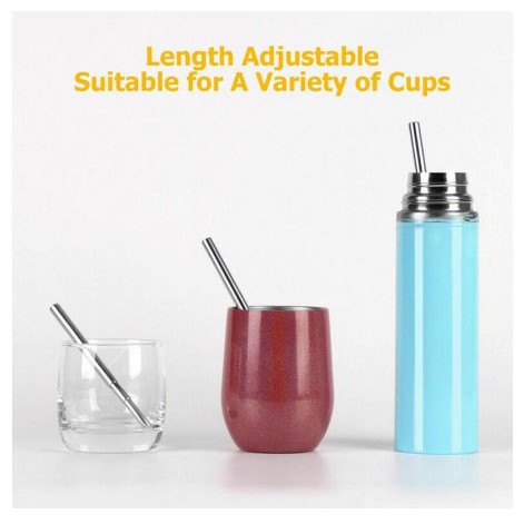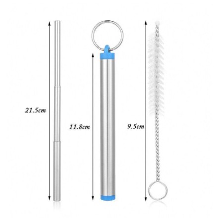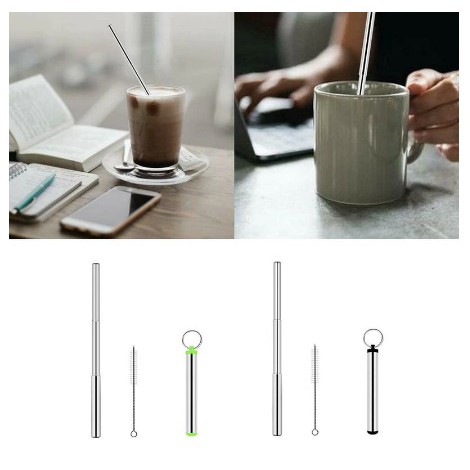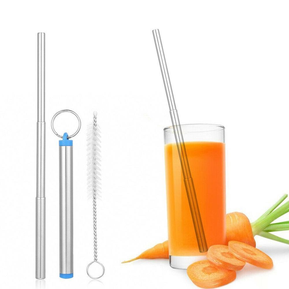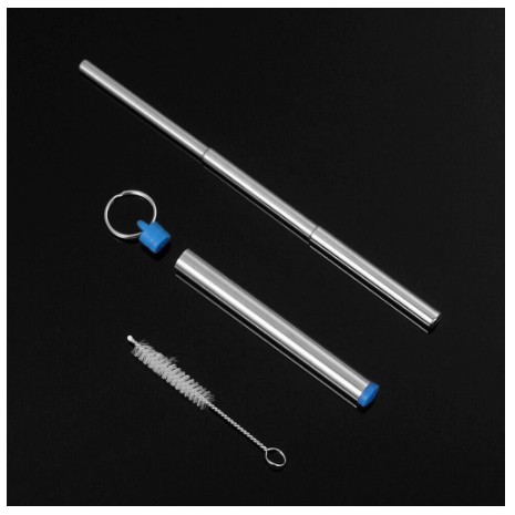 HO176 Stainless Steel TELESCOPIC STRAW SET with BRUSH Reusable Collapsible Foldable Straw