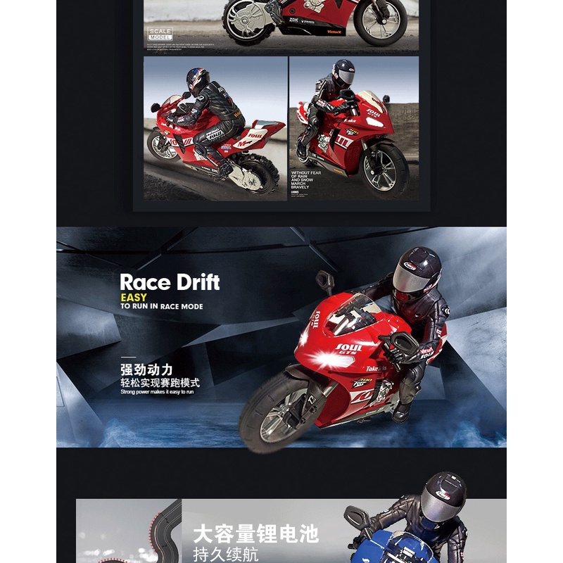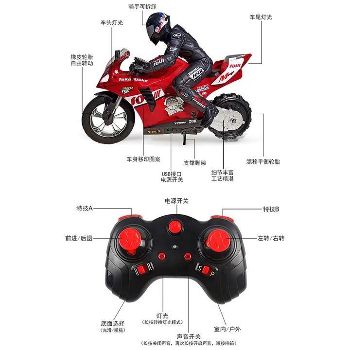 Remote Control Toys Mainan Elektrik Motosikal Kawalan JauhrcPerlumbaan Off-Road Motor Drift Handle Mengecas Double Bate