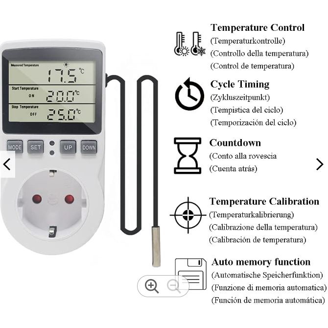 Digital Thermostat Temperature Control Plug UK Socket with Sensor