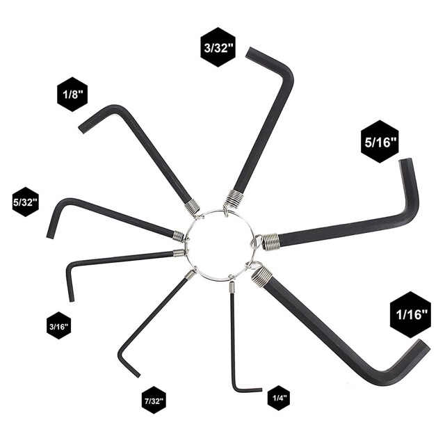 8PC Mini Micro Metric Hex Hexagon Allen Alan Key Hex Key Wrench Set with Keyring