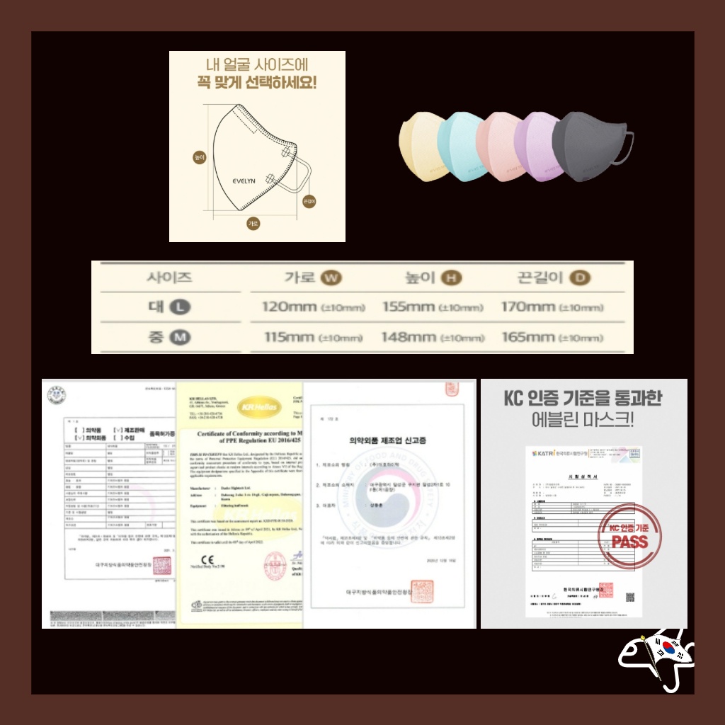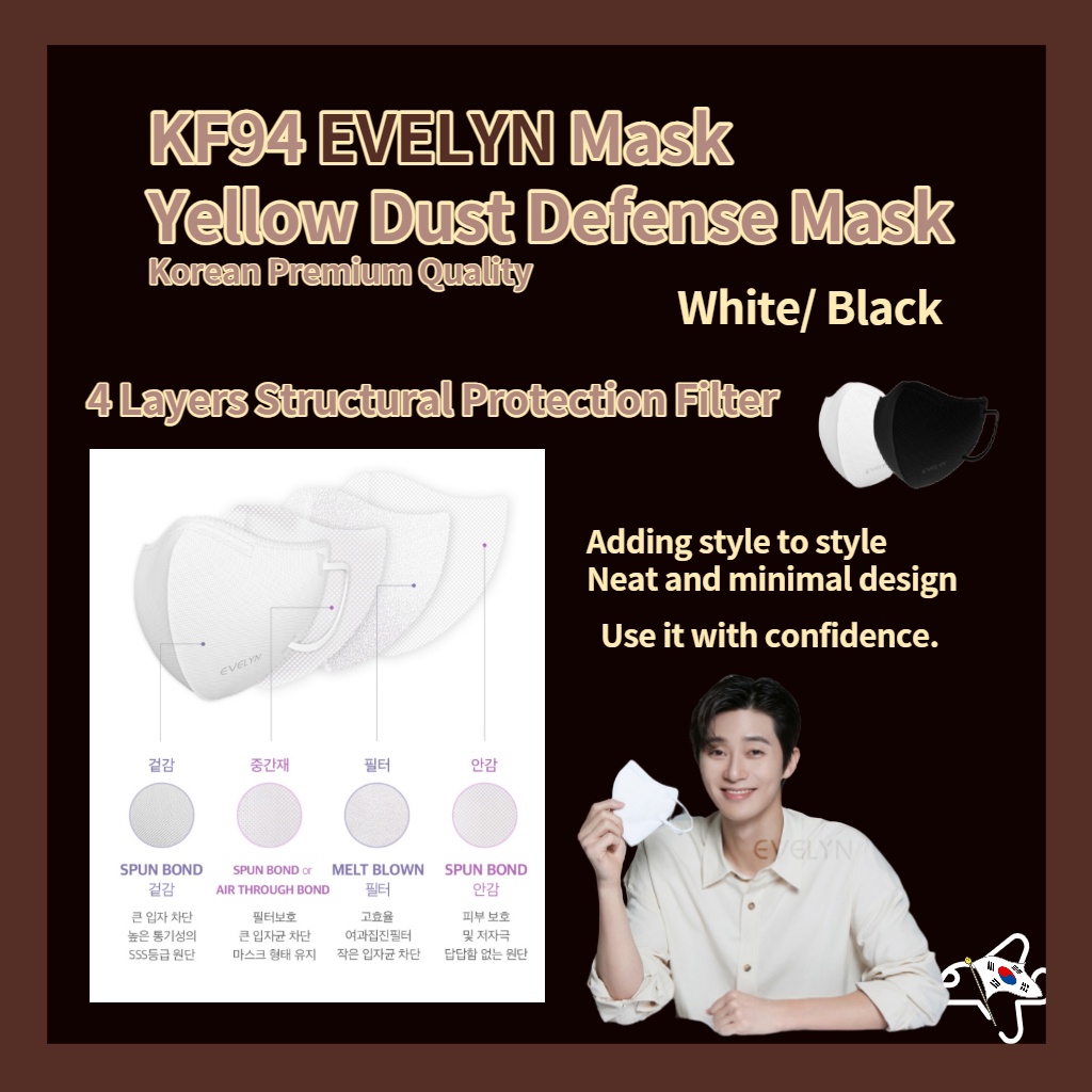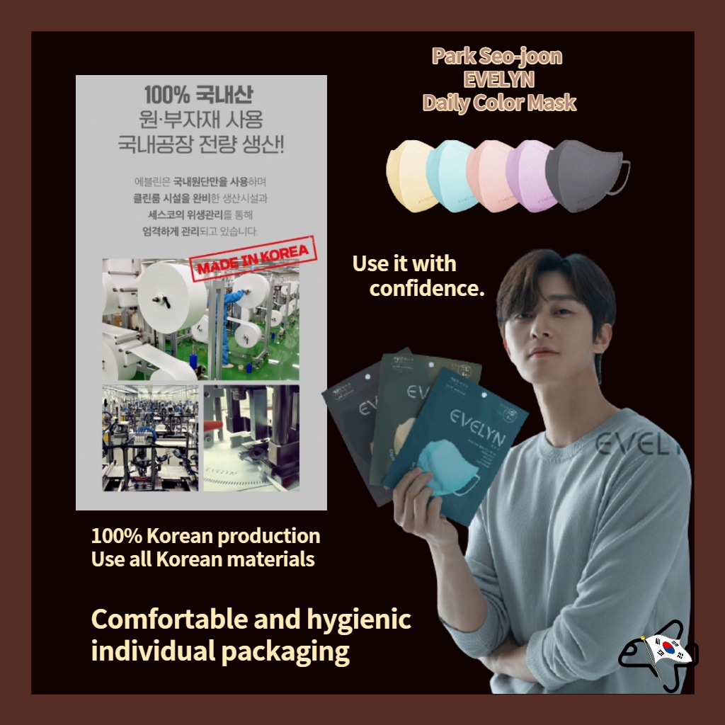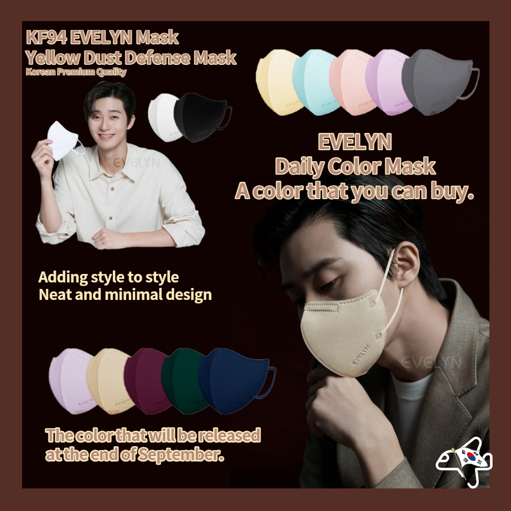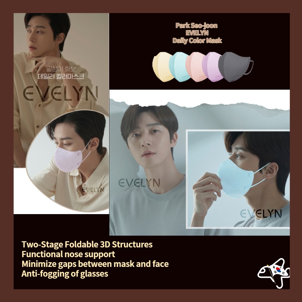 Park Seo joon EVELYN Daily Color Mask 5colors/KF94 EVELYN Mask Yellow Dust Defense Mask White/Black /Korean Premium Quality Mask/Individual packaging/Made in Korea