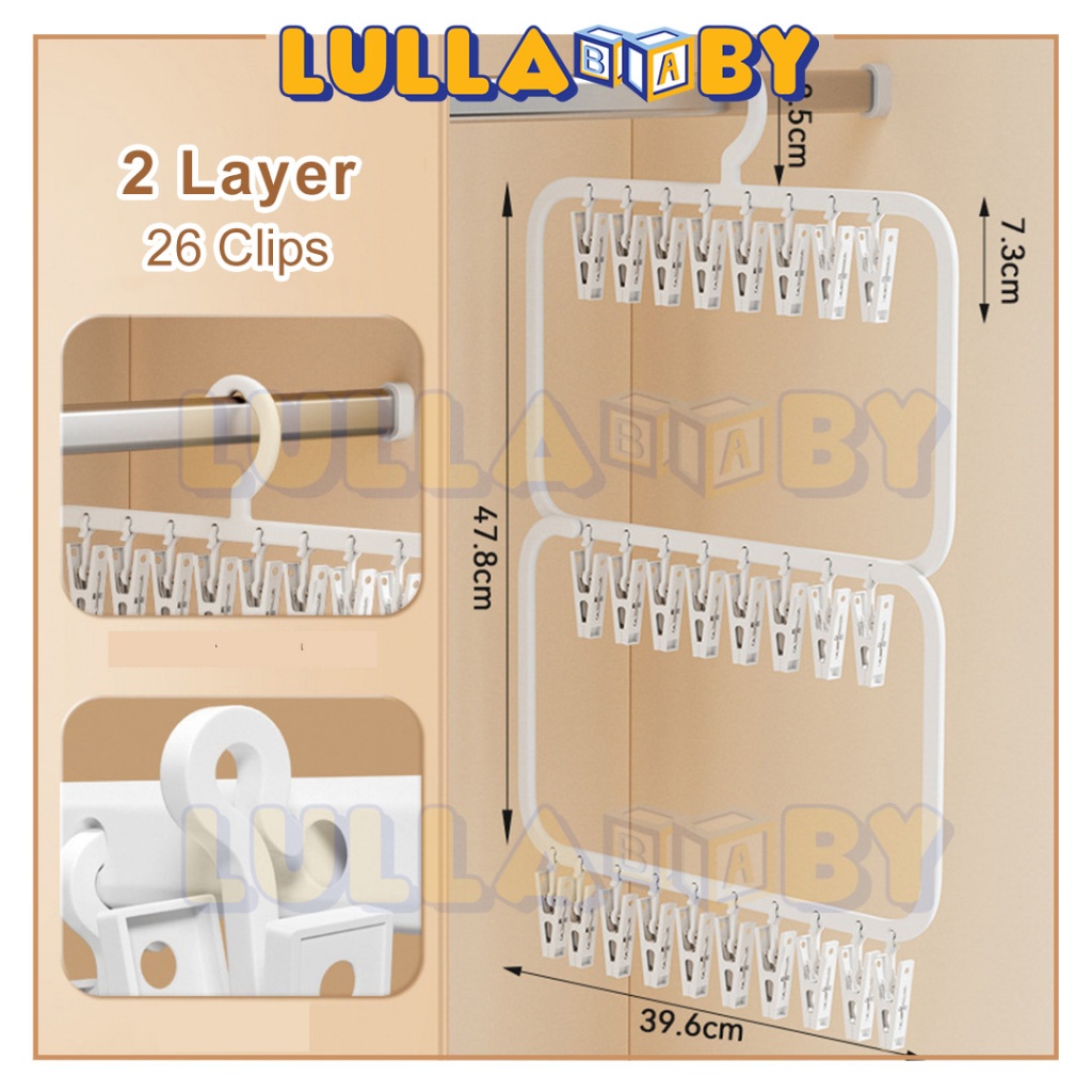 🔥READY STOCK🔥Baby Kids Clothes Hanger 2/3 Tier Drying Rack Hanger Wardrobe Rack Socks Underwear Closet Organizer