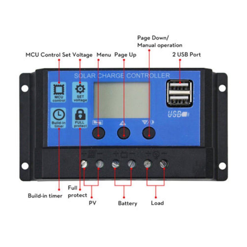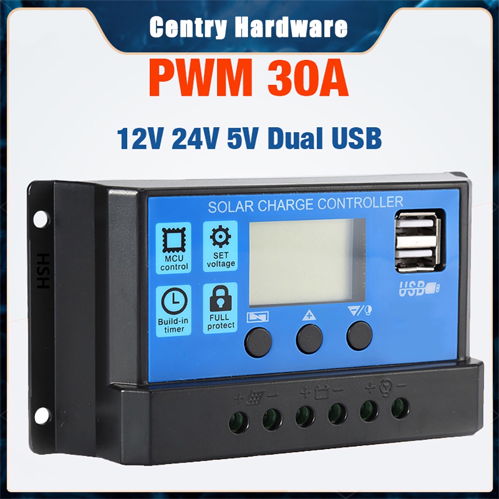 【Malay Shipment】12V/24V 30A Solar Panel Battery solar Charger Charging Controller Regulator usb charger charging