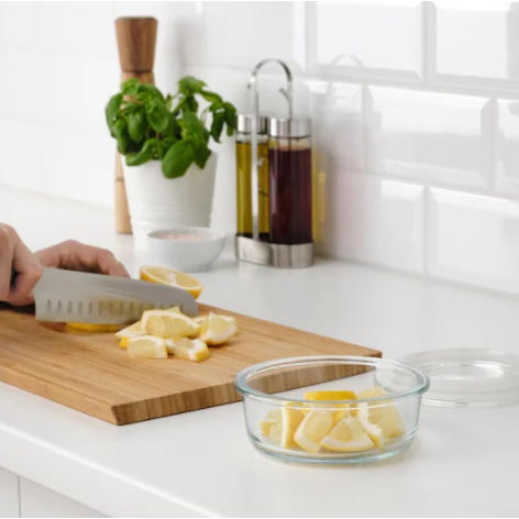 Food container, round/glass - stackable (space saver) - microwave-safe - freezer-safe - dishwasher
