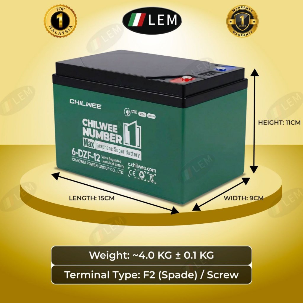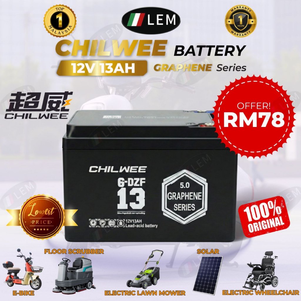 ORIGINAL BATERI CHILWEE 12V 12AH LEM ELECTRIC BIKE BATTERY LEAD ACID AGM GEL