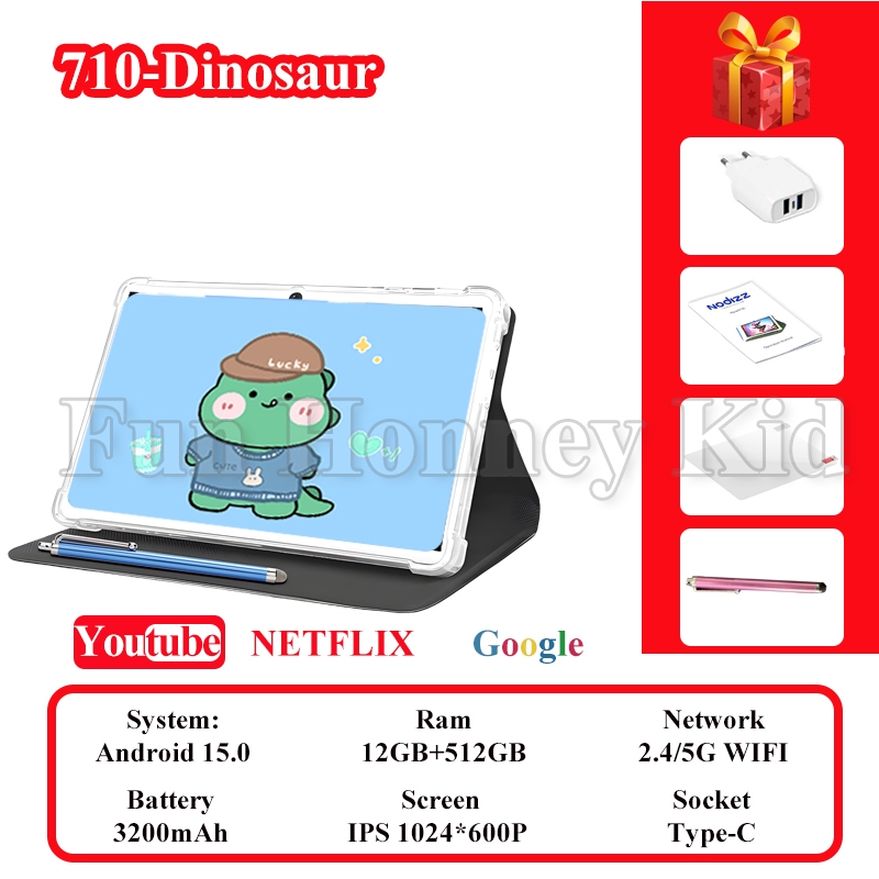 Kids Tablet Android 15.0 Educational Touch Tablet 7 inches 12+512GB Camera 5G IPS Screen With cover