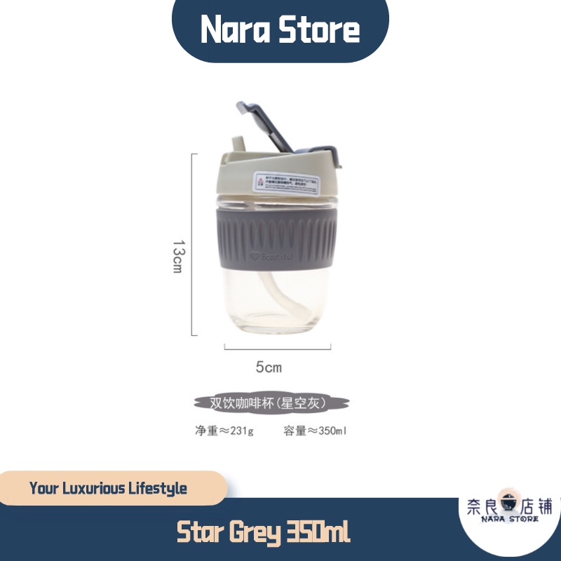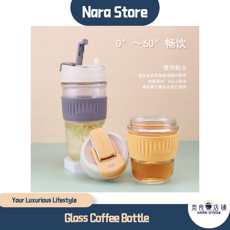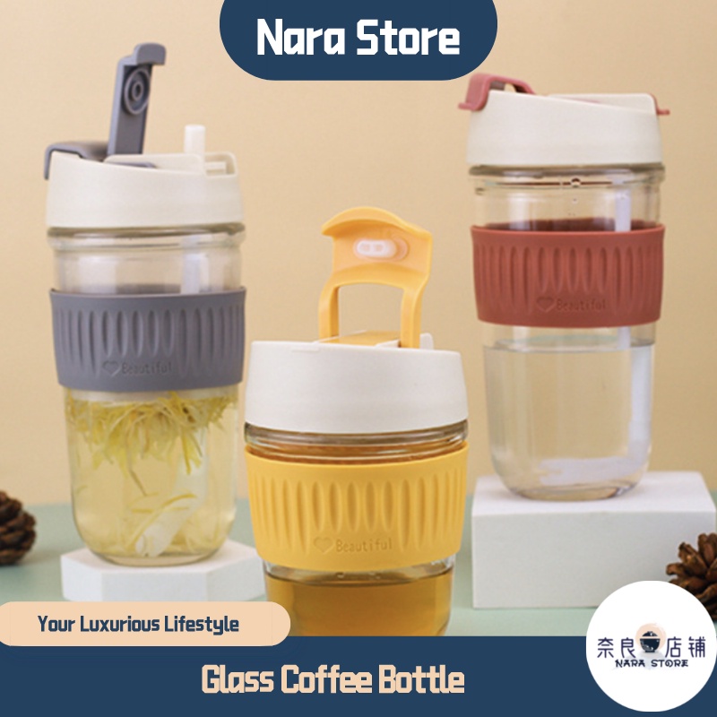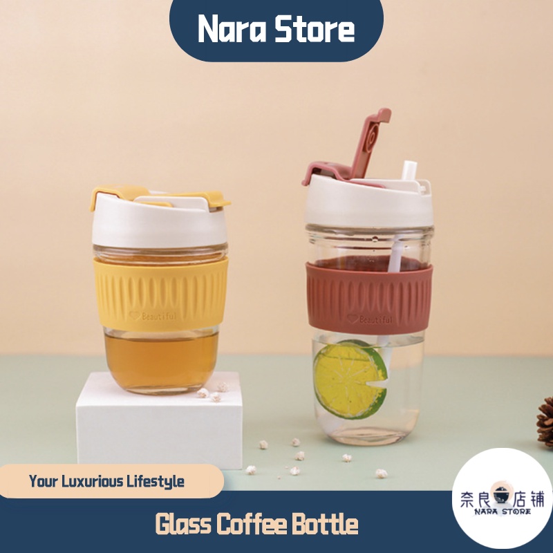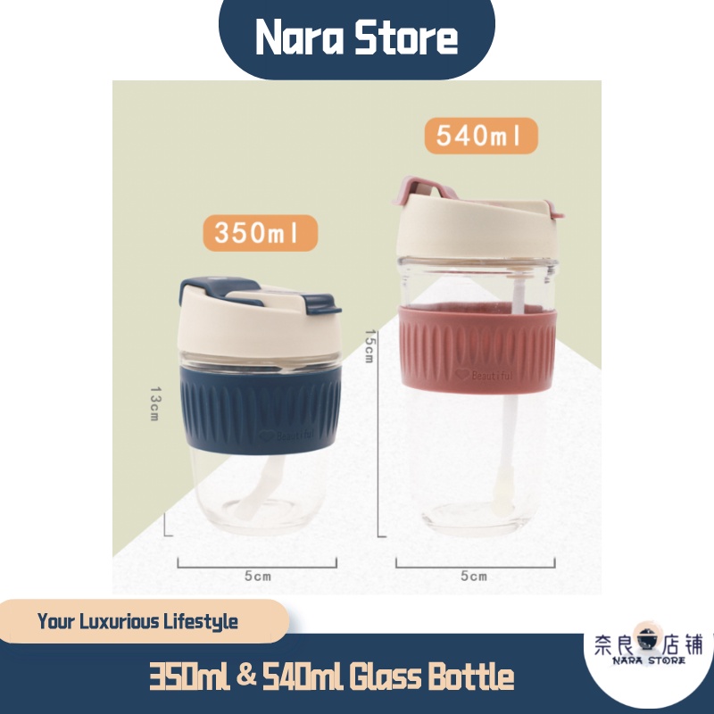 Glass Tumbler Glass Water Bottle Cawan Straw with Lid Sealed Cover & Straw Silicon Sleve (BPA Free)