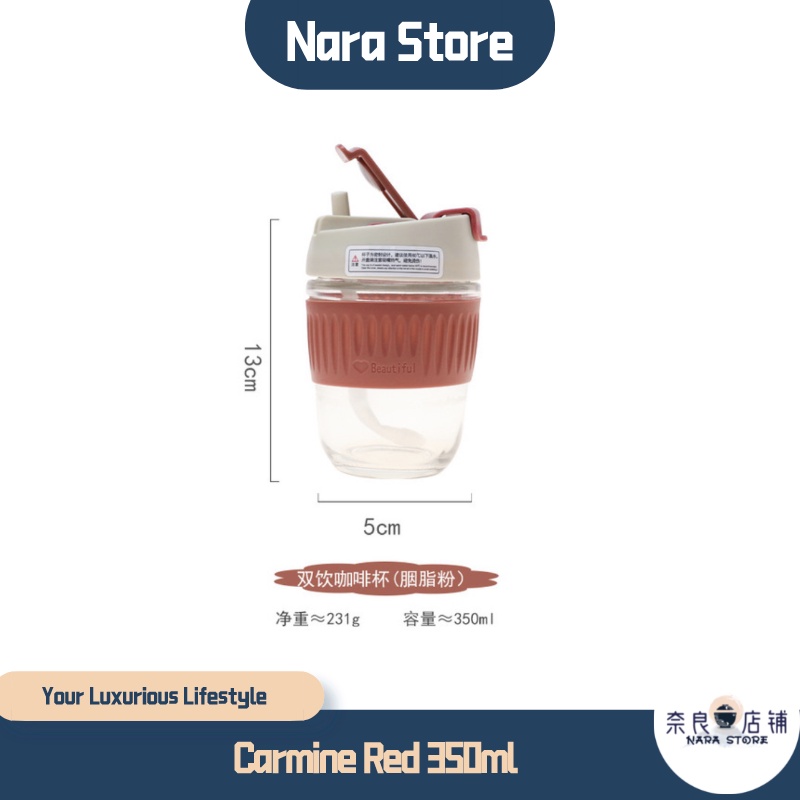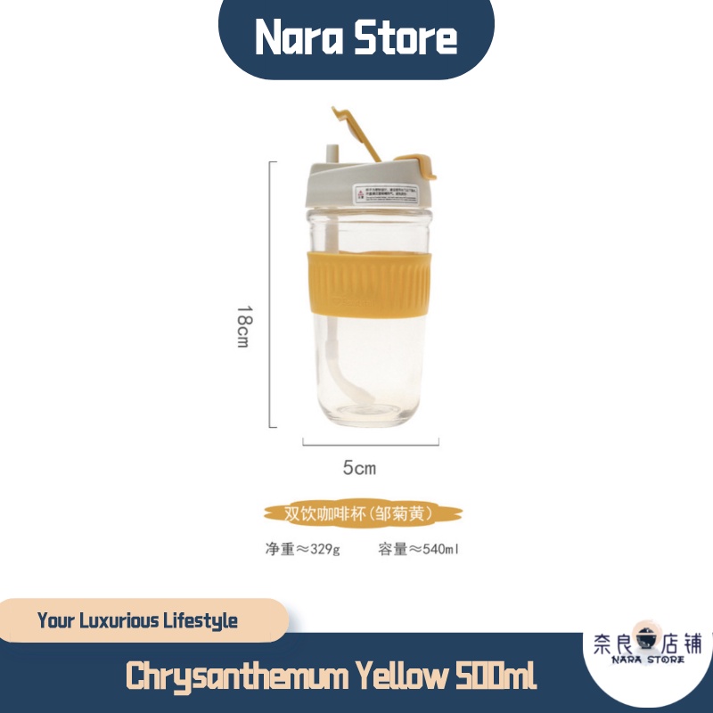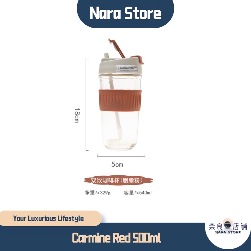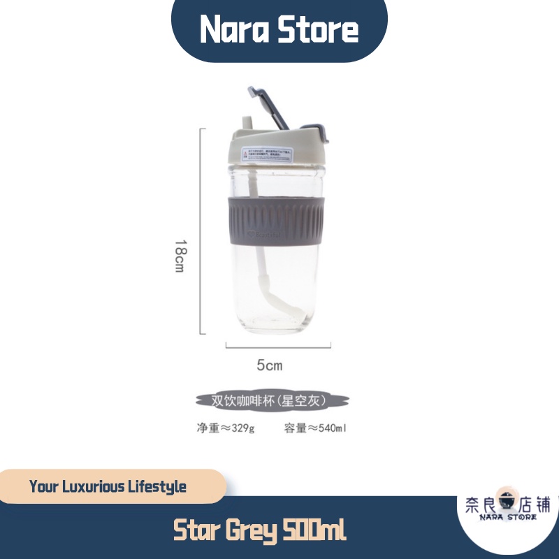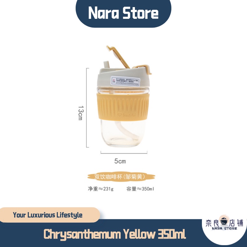 Glass Tumbler Glass Water Bottle Cawan Straw with Lid Sealed Cover & Straw Silicon Sleve (BPA Free)
