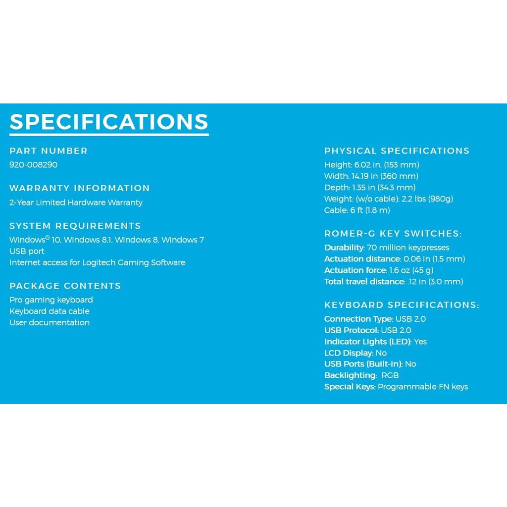 Logitech G PRO Mechanical Gaming Keyboard, Detachable Micro USB Cable, 920-009396